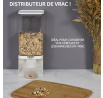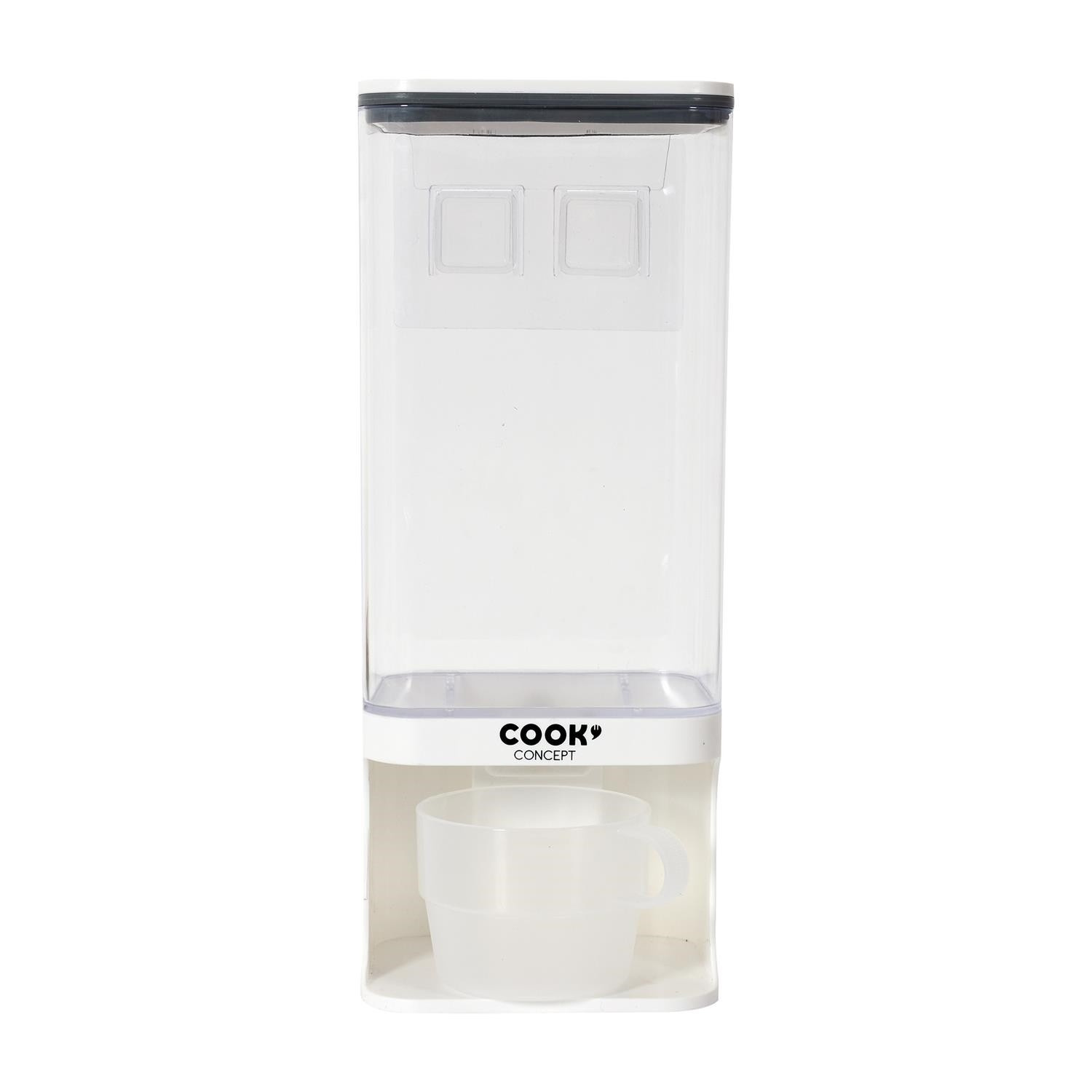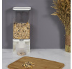 Zabadagoló zabpehelyhez, rizshez, kávéhoz vagy búzadarához. Az adagoló ideális bármilyen ömlesztett, száraz termékhez, amelyet kényelmes módon szeretnénk tárolni, miközben a termék folyamatosan megőrzi frissességét és illatát. A 1,5 literes adagolót felülről töltjük fel, és az alján vesszük ki a termékeket. A tartály a retesz lenyomásakor adagolja a terméket. A reteszt elindíthatjuk a készlethez mellékelt csésze vagy tálka megfelelő helyre történő behelyezésével. Ennek a megoldásnak köszönhetően az adagolóban soha nem marad régi termék, mert folyamatosan cserélődik. A tartály hátoldalán műanyag fogantyúk találhatók, amelyek lehetővé teszik a tartály falra történő felakasztását is. Műanyagból készült. Nem mosható mosogatógépben, nem használható sütőben vagy mikrohullámú sütőben.