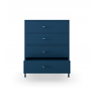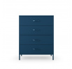 Négy tágas fiók elegendő tárolóhelyet biztosít ruhák, kiegészítők, dokumentumok vagy bármi más számára, amire szüksége van, hogy rendezett és kéznél legyen. A kiváló minőségű síneknek köszönhetően a fiókok simán és csendesen mozognak, így a komód használata öröm.Minden fiók úgy van tervezve, hogy akár 45 kg-ot is elbírjon, így nem kell aggódnia a nehezebb tárgyak tárolása miatt. A fém szerkezet biztosítja a stabilitást és a tartósságot, így a CARLA komódra hosszú éveken át számíthat.