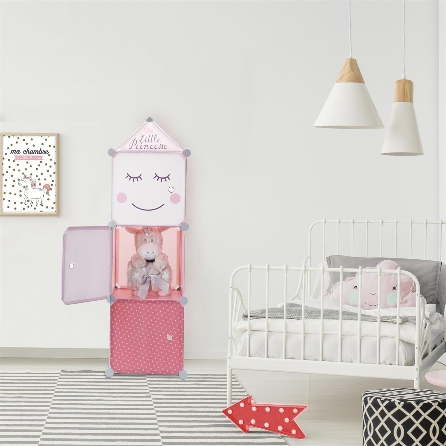 A Cubes polc, amelyet saját belátásunk szerint alakíthatunk, a legfiatalabbakra gondolva készült. A polc műanyagból és fém kötőelemekből készült. Érdekes, gyerekbarát dizájn színt visz a gyerekszobába. A kis hercegnő polca torony alakú. A szekrény minden előlapját fém fogantyú díszítette. A kocka méretei 30x30 cm. A polcok összekapcsolhatók, így érdekes és tágas bútordarabok jönnek létre a gyerekszobába. Csomag méretei: 34x40x57cm Súly: 2,6kg