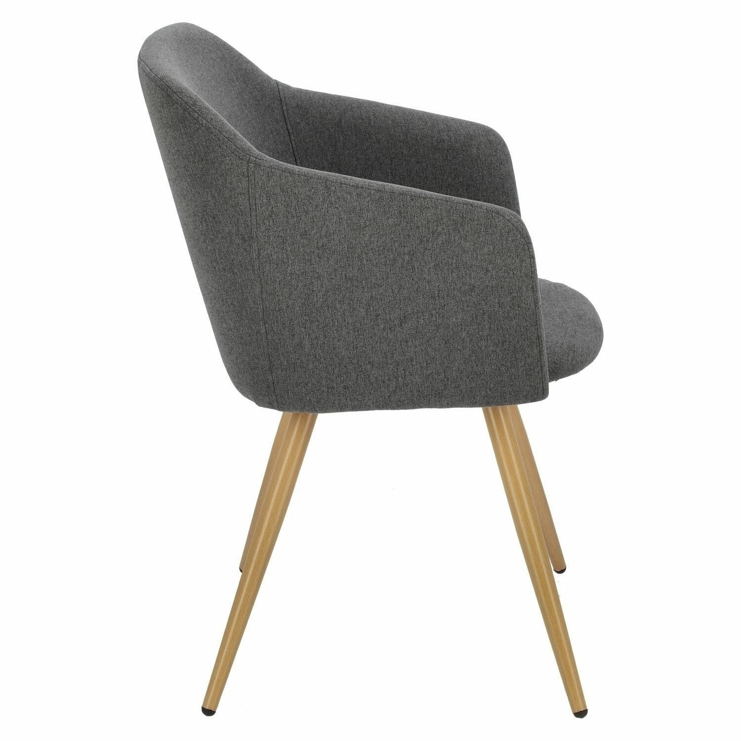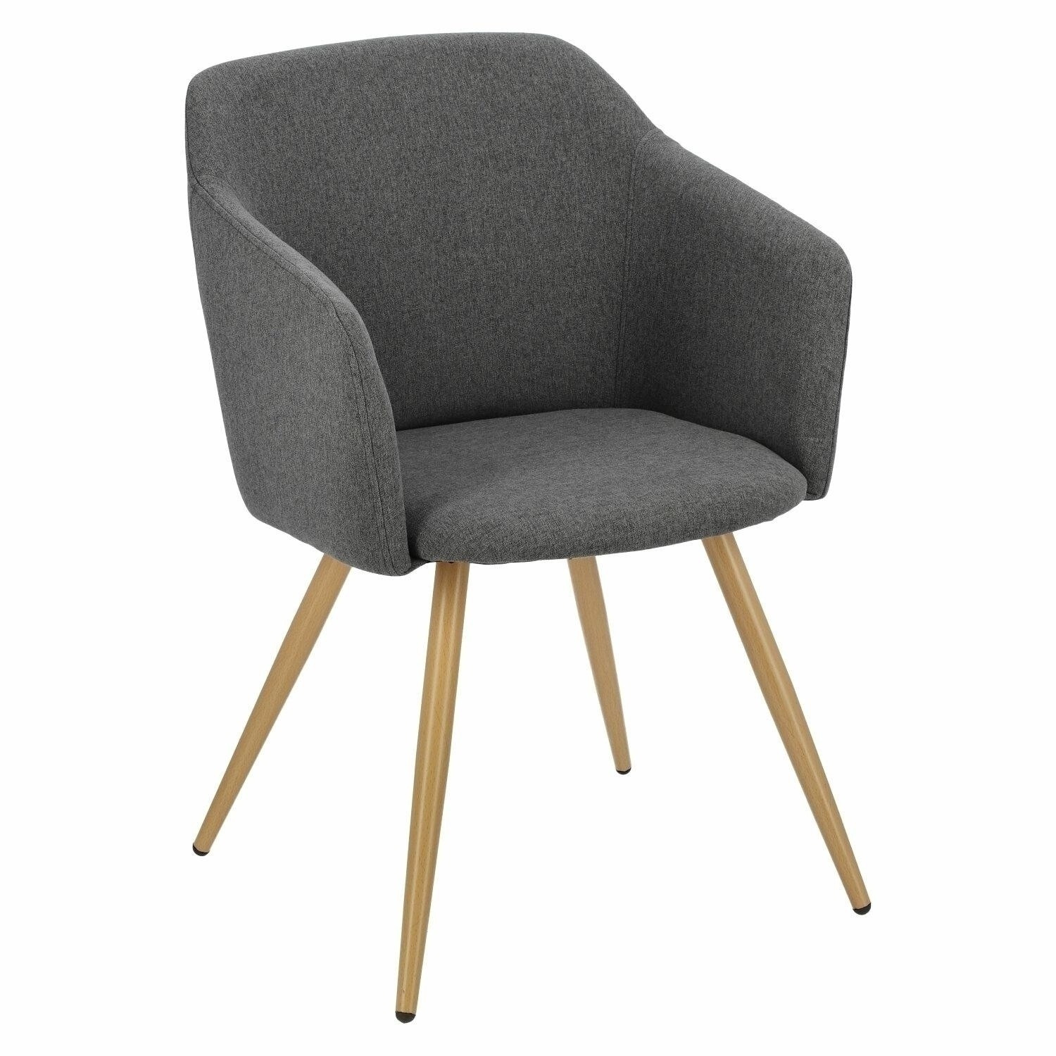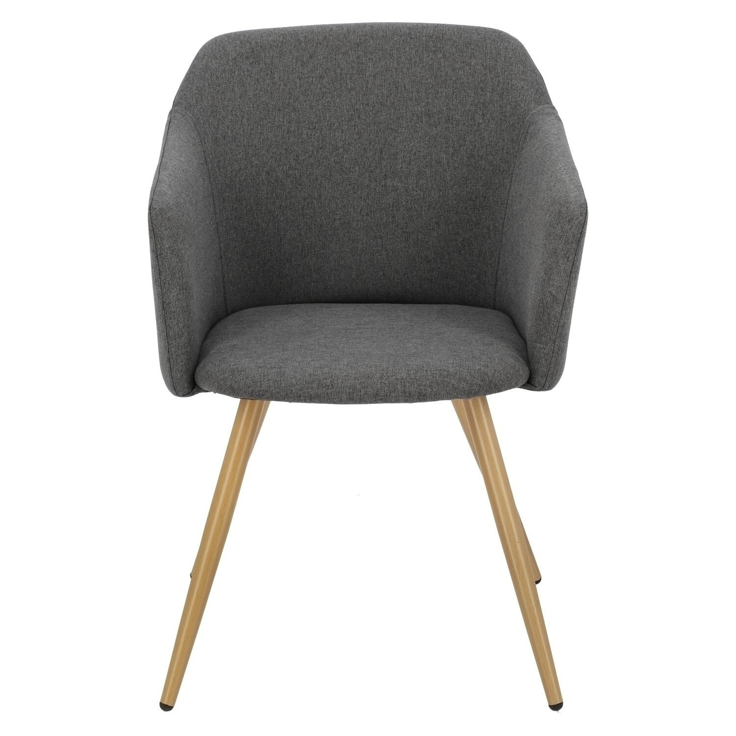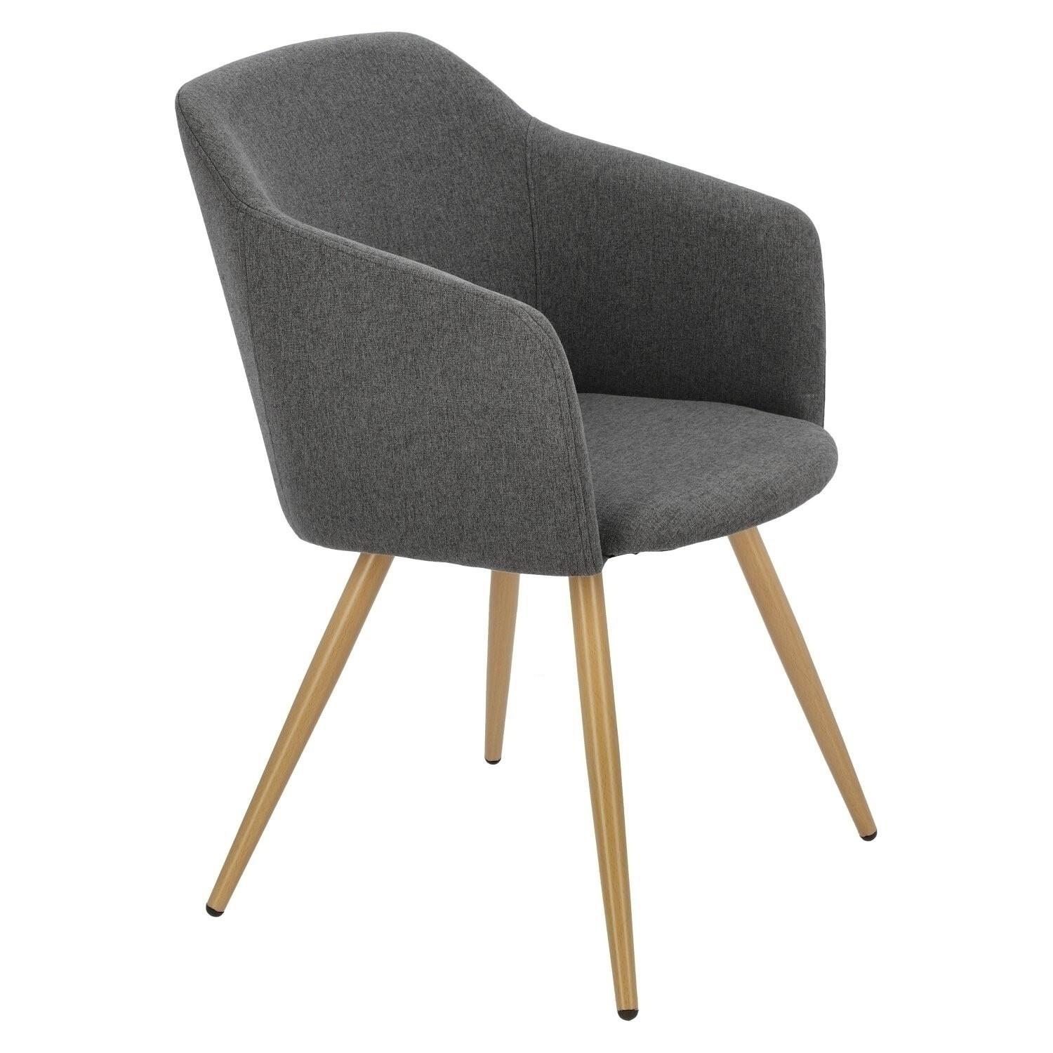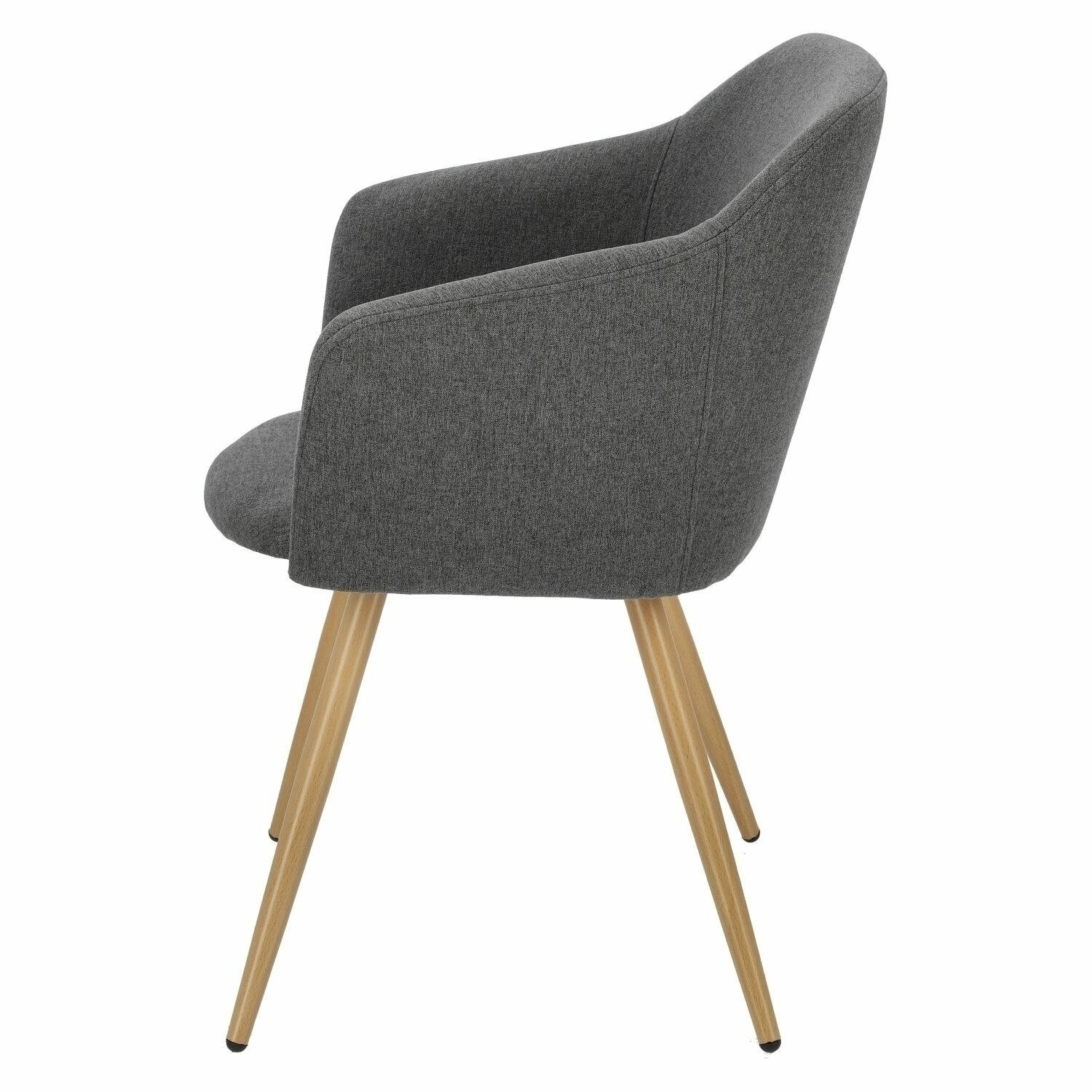 A Molto elegáns szék tartós antracit szövetből és fa hatású furnérral bevont fém lábakból készült. A szürke színű ülőke tökéletesen illik a természetes színű talapzathoz. A fém lábak fényes felületkezeléssel rendelkeznek, könnyen tisztíthatók és ellenállnak a szennyeződésnek. Az ergonomikus háttámla formáját tartós, hajlított rétegelt lemez segítségével érték el. A kartámaszok megfelelő magassága növeli az ülés kényelmét. A tompa színek és az egyszerű forma miatt a szék tökéletesen illeszkedik a skandináv stílusban, valamint a minimalista vagy modern berendezésű belső terekbe. A Molto szintén sikeresen bevált, mint kényelmes íróasztali szék. Hozzon hangulatos légkört otthonába, harmonizálja azt a természetes színek melegével! Ülőmagasság: 46 cm Ülőszélesség: 42 cm Karfa magasság: 70 cm Ülőmélység: 46 cm Lábvastagság: 3,5 cm Súly: 6 kg