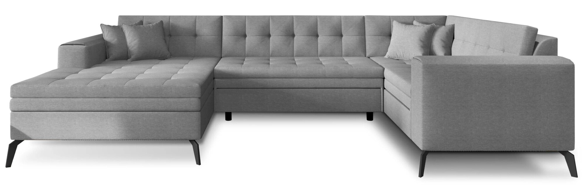 Montez is a spacious, comfortable and upholstered corner sofa of sizeable dimensions of 340 x 180 x 93 cm. The U-shaped piece of furniture is ideally suited for large rooms. It has a comfortable, soft seat made of durable corrugated spring, as well as flexible T30 foam, which is resistant to damage, scratches and dents. Our corner sofa is multifunctional, as it is very simple to convert it into a bed. After unfolding the piece of furniture with the help of the DL automatic, we gain as much as 275 x 120 cm of surface for night rest. Among the characteristics of the Montez corner sofa we can include: a high, 51 centimeter seat, elegant quilting, high, 13 centimeter steel legs, as well as a multitude of available color variants. The product is available in all fabrics from the ELTAP collection. Montez is a very tasteful, chic and, above all, comfortable corner sofa that will fit perfectly into the interior of any larger living room. It is worth having such a multifunctional piece of furniture, which will not only enliven many a room, but will also serve in it for years.