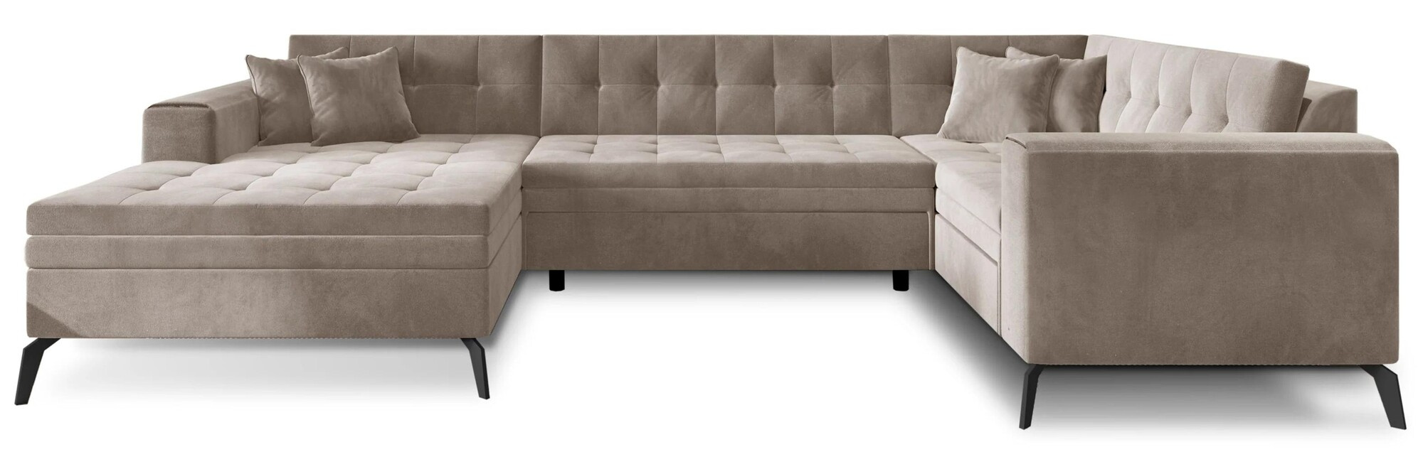 Montez is a spacious, comfortable and upholstered corner sofa of sizeable dimensions of 340 x 180 x 93 cm. The U-shaped piece of furniture is ideally suited for large rooms. It has a comfortable, soft seat made of durable corrugated spring, as well as flexible T30 foam, which is resistant to damage, scratches and dents. Our corner sofa is multifunctional, as it is very simple to convert it into a bed. After unfolding the piece of furniture with the help of the DL automatic, we gain as much as 275 x 120 cm of surface for night rest. Among the characteristics of the Montez corner sofa we can include: a high, 51 centimeter seat, elegant quilting, high, 13 centimeter steel legs, as well as a multitude of available color variants. The product is available in all fabrics from the ELTAP collection. Montez is a very tasteful, chic and, above all, comfortable corner sofa that will fit perfectly into the interior of any larger living room. It is worth having such a multifunctional piece of furniture, which will not only enliven many a room, but will also serve in it for years.