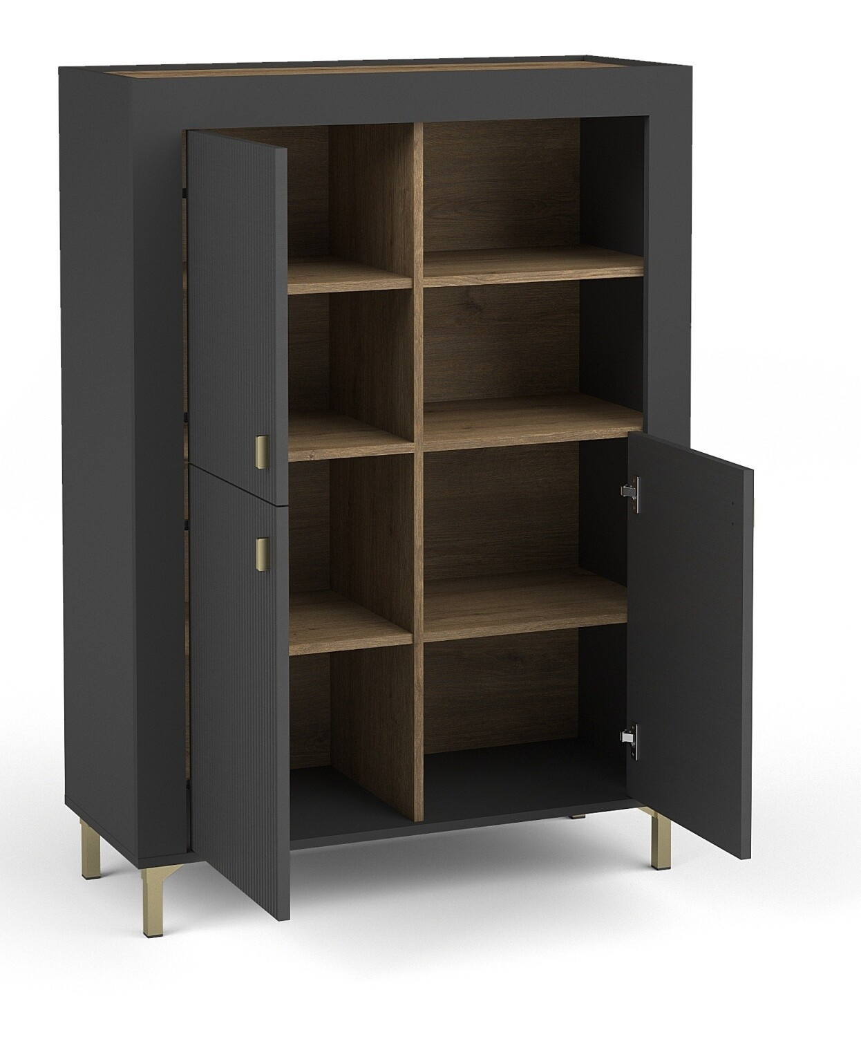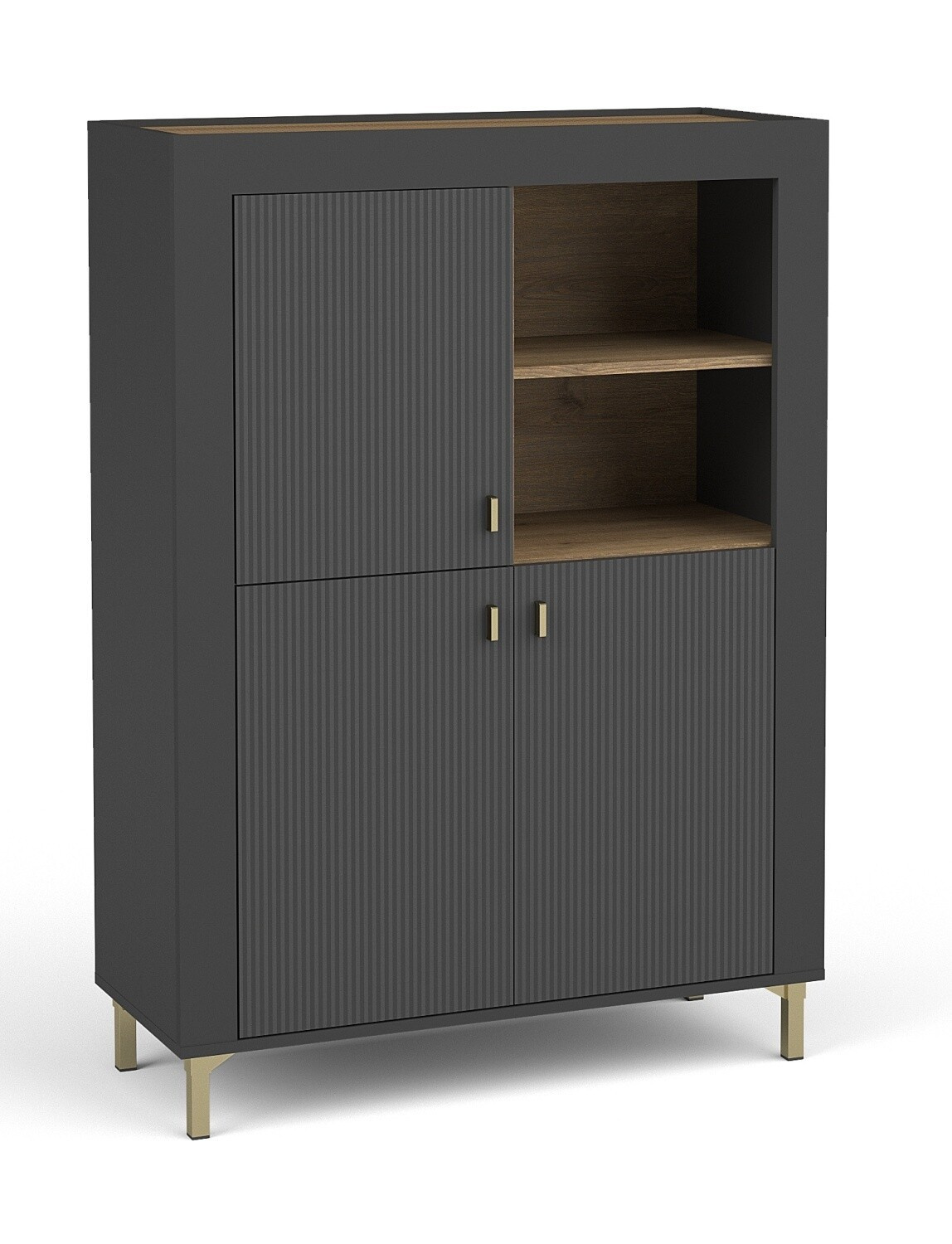 - A felső lap, a belső részek és a bútor válaszfalai kiváló minőségű és tartós laminált anyagból készültek whisky tölgy árnyalatban