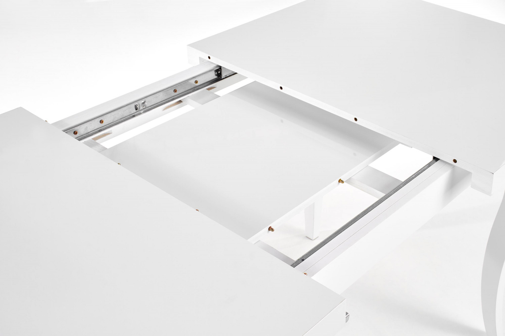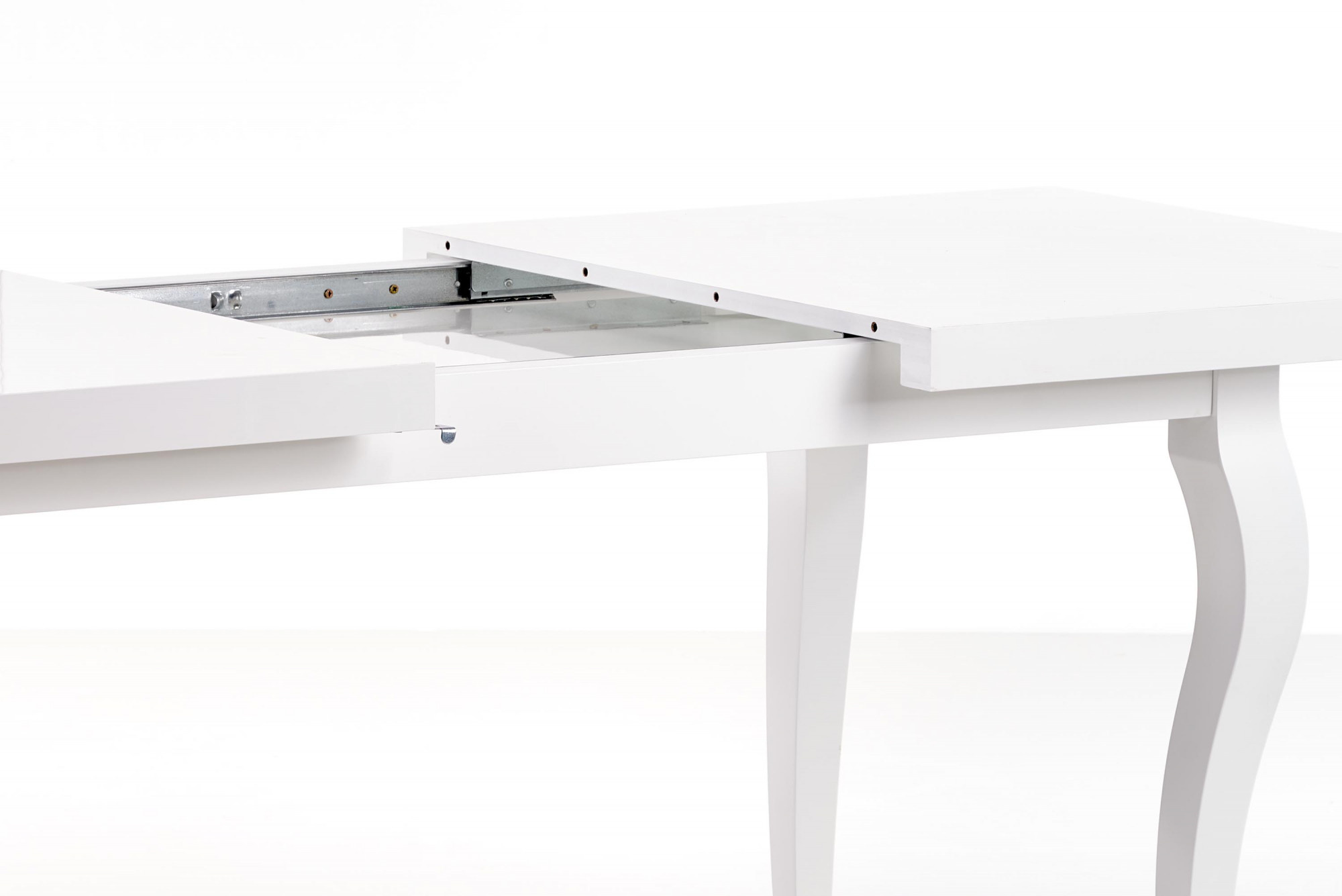 kihúzható asztal, méretek: 140-180/80/75 cm, anyag: felső lap - MDF laminált lap + ABS élek, lábak - tömör fa (bükk), szín: fehér