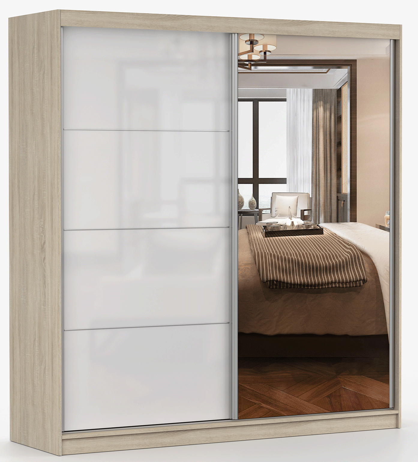 MULTI 35 gardróbszekrény - 203 cm, Sonoma Tölgy/Fehér Fényes