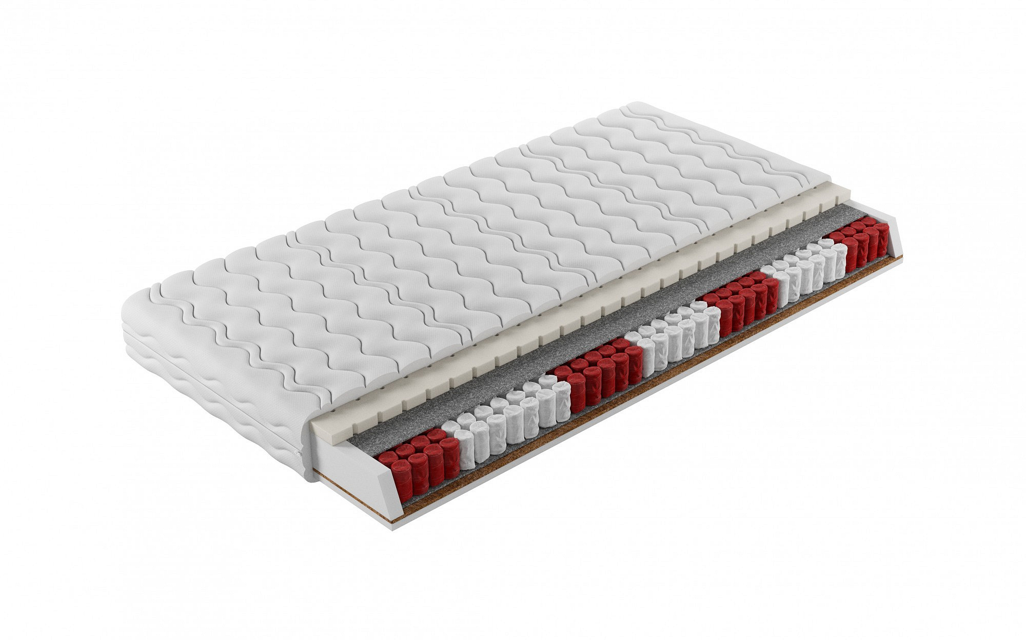 A KALI multipocket rugós matracban nagy mennyiségű rugó került felhasználásra, aminek köszönhetően a matrac tökéletesen alkalmazkodik a testhez és megfelelően támasztja alá, ami segít a helyes testtartás fenntartásában. A KALI matrac magas rugalmasságának köszönhetően ellenáll a deformációknak, ami hosszú élettartamot biztosít. A matrac töltete kiváló minőségű T25 poliuretán habból készült, két keménységi oldallal: H3 és H5 - közepesen kemény és nagyon kemény. A pihenés kényelmének javítása érdekében a KALI modell 1 cm magas kókuszdeszkával és latexréteggel van felszerelve. Ilyen kombináció biztosítja, hogy a matrac jó tartóssággal és légáramlással rendelkezzen. Fontos tulajdonsága a hipoallergén jellege is. Antiallergén, steppelt huzat nem vonzza a port, atkákat vagy más allergéneket, így kedvelt választás az allergiára és bőrirritációra hajlamos személyek számára. Ezenkívül mosógépben is mosható 40 Celsius-fokon, ami még inkább megkönnyíti az alvás megfelelő higiéniájának fenntartását. A huzat cipzárral rendelkezik, így könnyen levehető és felhelyezhető.