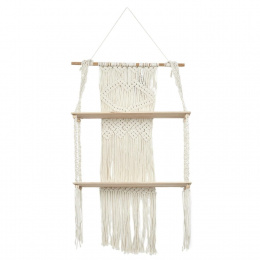 A Boho polc egy pamutból készült, kötött szerkezet és fenyő polcok kombinációja. A makramé stílusú fonott polc illik a természetes, világos belső térbe. Maximális terhelés: 5 kg