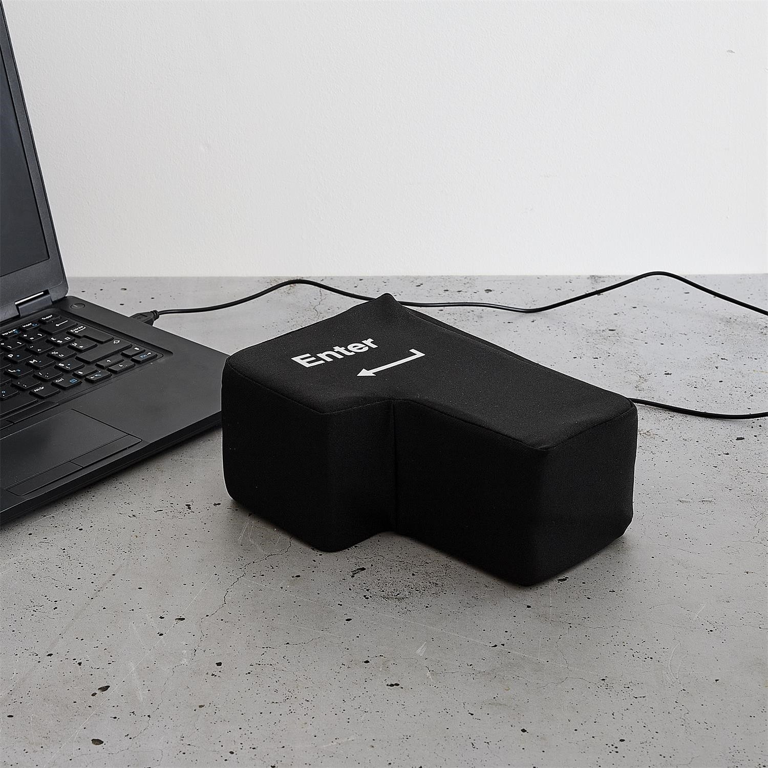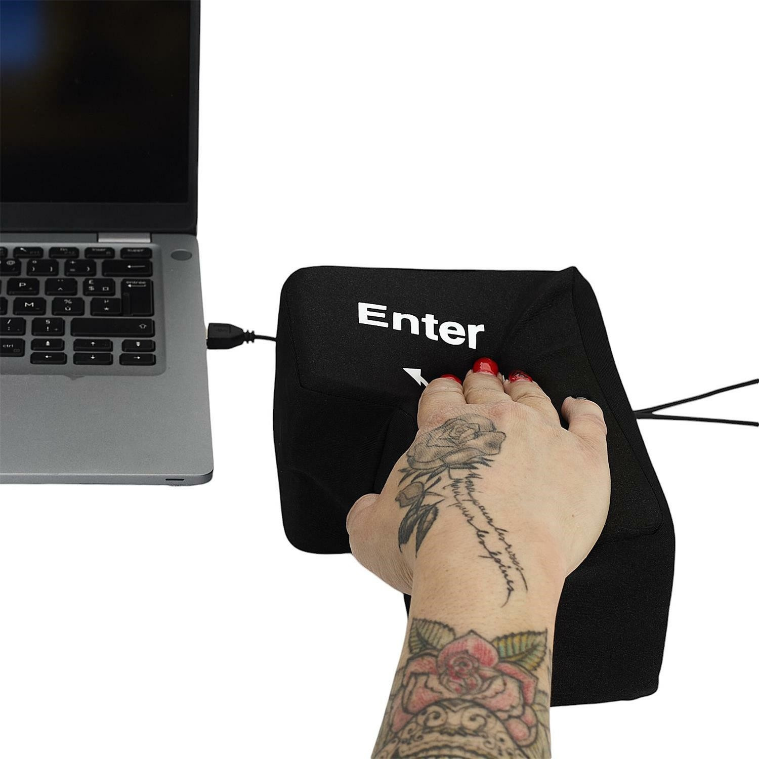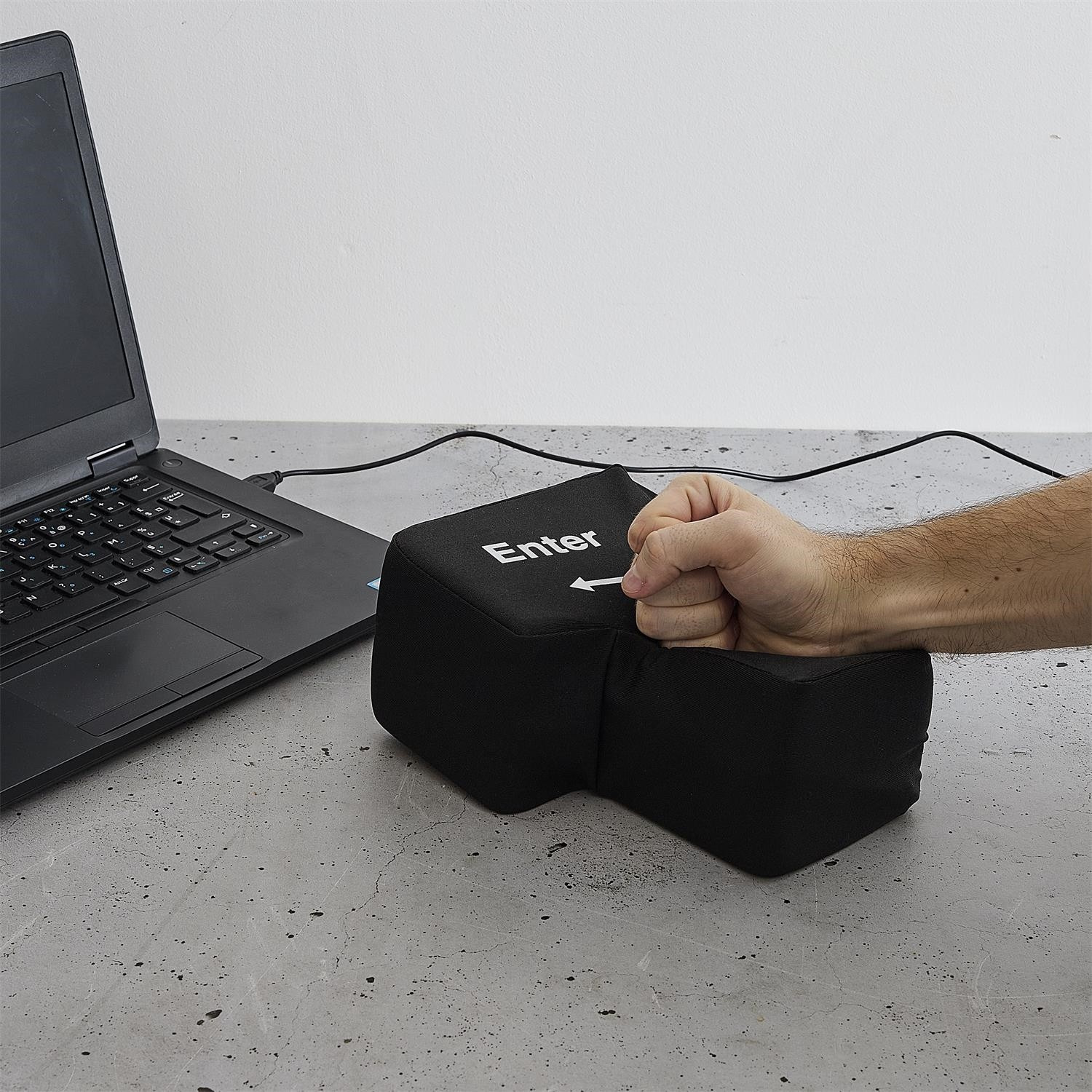 Ez egy innovatív stresszoldó eszköz nagy, puha Enter billentyű formájában, amely USB-n keresztül csatlakoztatva valódi billentyűként működik a billentyűzeten. A termék a stresszcsökkentő játék funkcióját ötvözi a gyakorlati hasznosítással – lehetővé teszi a felhasználó számára, hogy szó szerint „ráüssön az Enterre”, hogy megerősítse a parancsot a számítógépen. Ideális irodába és távmunkához, kiemelkedik egyszerű kezelhetőségével, masszív kivitelezésével és magas ütésállóságával. Nagyszerű ajándék és vonzó kiegészítő az irodában.