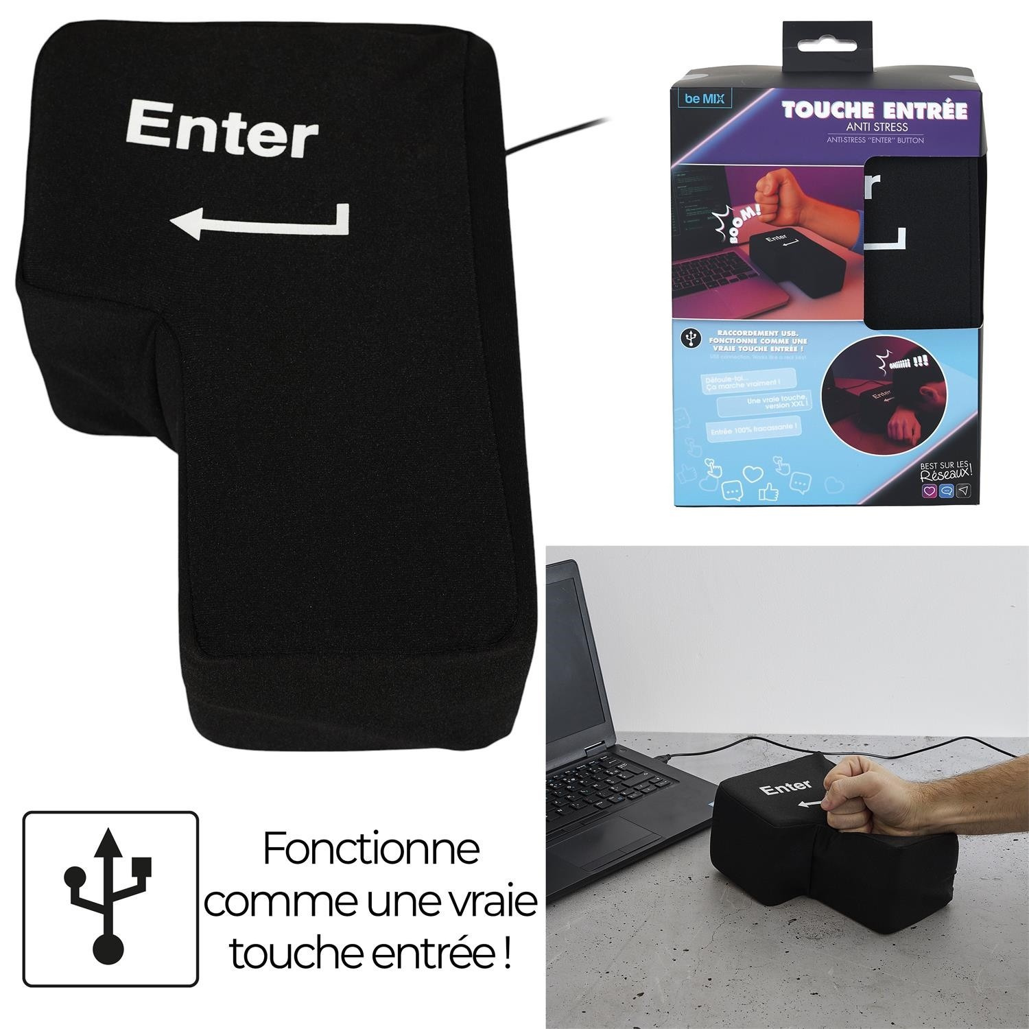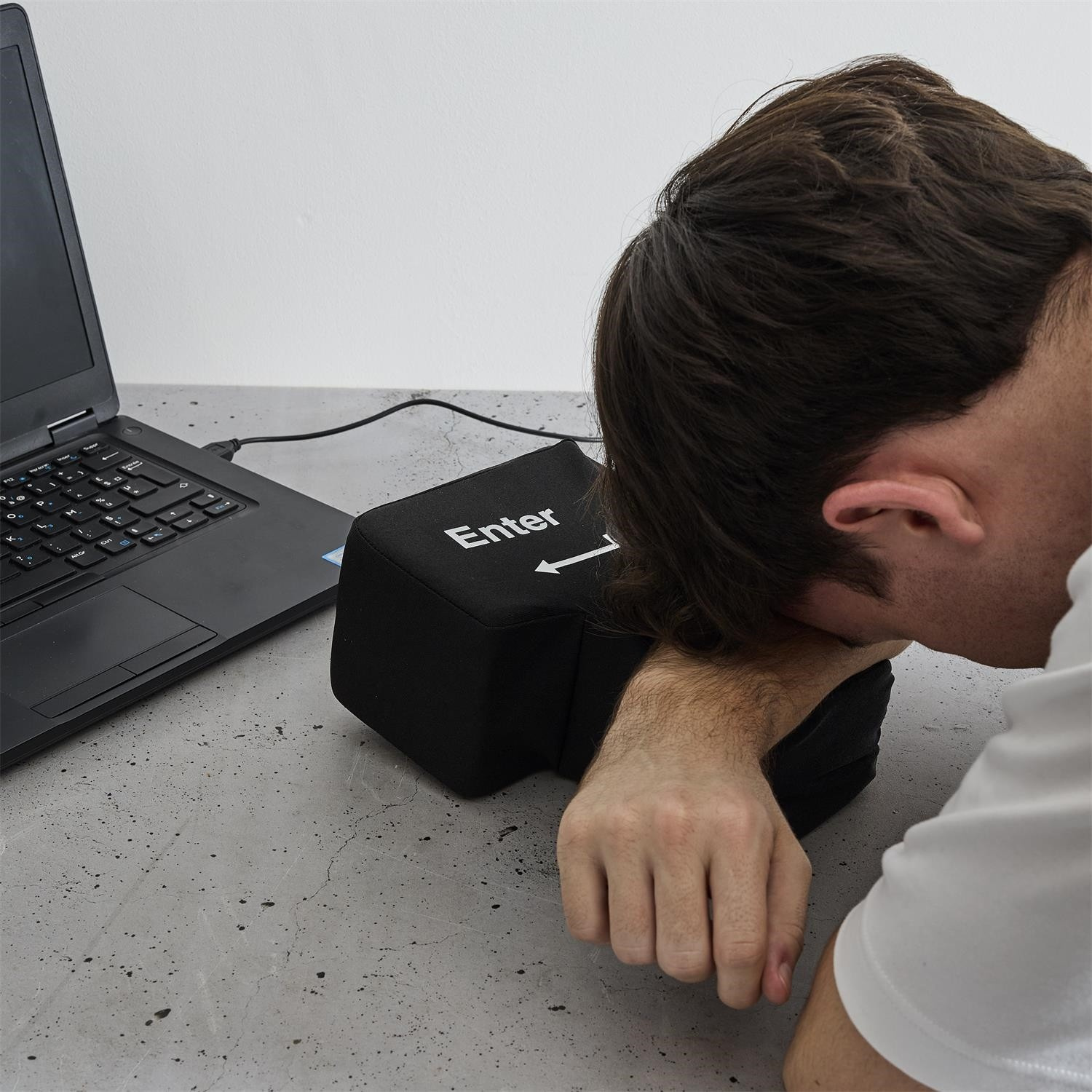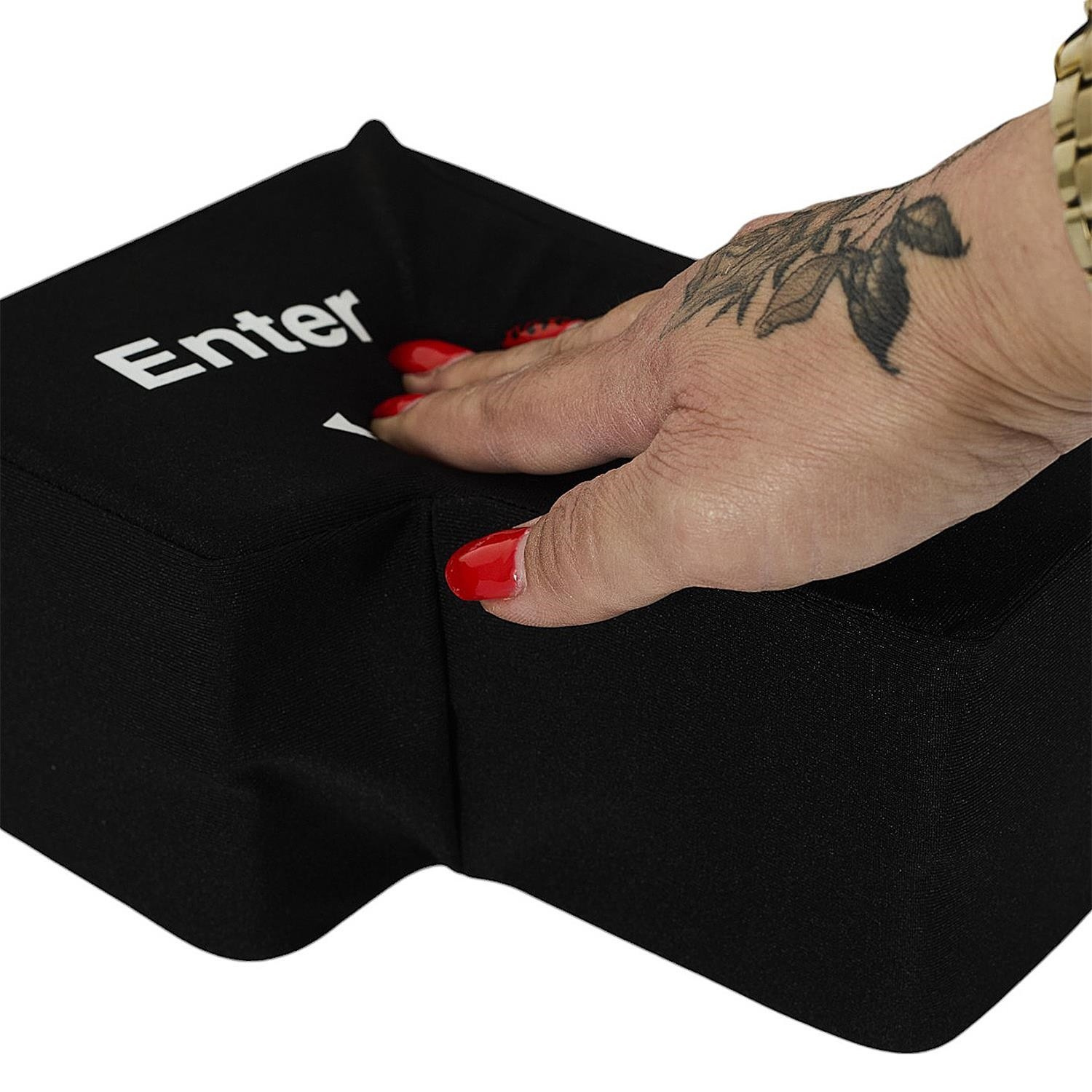 Ez egy innovatív stresszoldó eszköz nagy, puha Enter billentyű formájában, amely USB-n keresztül csatlakoztatva valódi billentyűként működik a billentyűzeten. A termék a stresszcsökkentő játék funkcióját ötvözi a gyakorlati hasznosítással – lehetővé teszi a felhasználó számára, hogy szó szerint „ráüssön az Enterre”, hogy megerősítse a parancsot a számítógépen. Ideális irodába és távmunkához, kiemelkedik egyszerű kezelhetőségével, masszív kivitelezésével és magas ütésállóságával. Nagyszerű ajándék és vonzó kiegészítő az irodában.