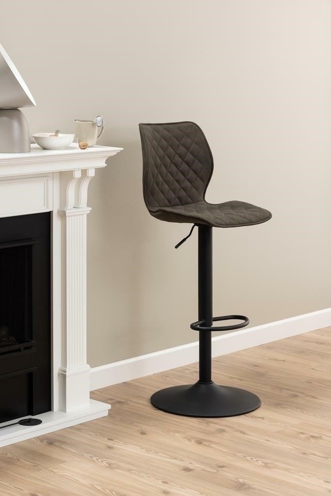 A Naomi bárszék elegáns bútordarab az étkezőbe, konyhába vagy étterembe. Van egy alapja egyetlen, fém láb formájában. Az ülés és a háttámla poliuretán habból készült, Preston fabric anthracite 96 szövettel kárpitozva. A szék belső oldalán dekoratív geometrikus steppelés található. A Naomi bárszék lábtartóval rendelkezik, és a magassága is állítható (60-81 cm). Háttámla magassága: 34,5 cm Háttámla szélessége: 44 cm Háttámla mélysége: 37,5 cm Kartonok száma: 1 Kartonok méretei: 58x46x43 cm Kartonok súlya: 9,9 kg