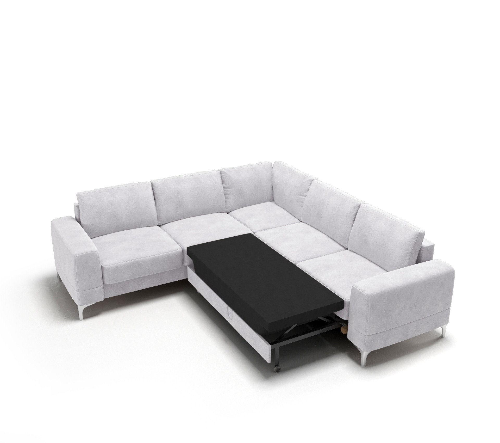 NAROŻNIK TAPICEROWANY ARIA MAX Narożnik rozkładany Aria Max z funkcją spania i pojemnikiem na pościel. Meble tapicerowane: Aria. Narożnik Aria Max to tylko jedna z wielu propozycji tej samej kolekcji. Meble te to połączenie klasyki z komfortem, który gwarantują profilowane siedziska i oparcie z wygodnymi poduszkami. Całość obszyta jest ozdobnym szwem. Wymiary: 250x250 cm Powierzchnia spania: 215x145 cm Głębokość całkowita: 95 cm Głębokość siedziska: 62 cm Wysokość całkowita: 82 cm Szerokość boku: 20 cm Wysokość siedziska od podłogi: 42 cm Wysokość nóżki: 11 cm Tolerancja wymiarów +/- 3% Narożnik Rozkładany Aria Max posiada: poduszki pełniące funkcję oparcia z odpinanymi pokrowcami łatwymi do czyszczenia funkcję spania rozkładaną na metalowym automacie siedziska na sprężynach falistych duży pojemnik na pościel wykonany w całości z płyty laminowanej Wykonanie Wszystkie elementy zostały obszyte grubym szwem, co stanowi ozdobę i wzmacnia połączenia tkanin. Budowa siedziska zapewnia miękkość i dużą odporność na odkształcenia, dzięki zastosowaniu sprężyn falistych i pianki wysoko elastycznej. Wypełnienie siedzisk to pianka T35 lub HR, wypełnienie oparć to pianka HR35, która zapewnia największy komfort. Stelaże wszystkich naszych mebli są wykonane z drewna i płyty meblowej. Siedziska i elementy silnie obciążone są zbudowane na ramach drewnianych. Wzornik skór naturalnych: Madras jednokolorowy półmat, symbol K Madras antykowany połysk, cieniowana, symbole A, C, S Federica pół-połysk, symbol G Skóry mogą wykazywać delikatne różnice w kolorystyce, strukturze powierzchni i mogą posiadać drobne blizny. Wynika to z naturalnego środowiska, w którym żyły zwierzęta i nadaje skórze jak i meblom indywidualny charakterystyczny wygląd. Cechy te absolutnie nie mają wpływu na trwałość użytkową mebli a wręcz przeciwnie. Takie i podobne zaniki nie są wadą, a jedynie potwierdzeniem autentyczności naturalnej skóry. Już teraz możesz oglądać nasze gorące realizacje różnych systemów mebli w specjalnie przygotowanej GALERII, dzięki której odwiedzisz nas bez wychodzenia z domu. Prosimy o przemyślane zakupy. Meble ze skóry naturalnej są wykonywane na zamówienie indywidualne i nie podlegają zwrotowi. Mebel z funkcją rozkładania do spania okazjonalnego. Do spania codziennego rekomendujemy sofy typu DL. Funkcja spania wykonywana jest w tkaninie zastępczej.