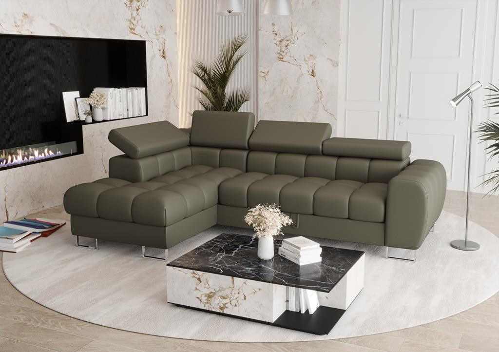 Poznaj narożnik Aspen Mini skóra naturalna, który doskonale łączy funkcjonalność, wygodę i styl. To kompaktowe rozwiązanie świetnie sprawdzi się w salonie, pokoju gościnnym lub innej przestrzeni, w której chcesz stworzyć przytulny kącik do relaksu. Narożnik Aspen Mini oferuje komfortowe miejsca do siedzenia w ciągu dnia oraz możliwość okazjonalnego spania nocą. Dzięki regulowanym zagłówkom możesz dostosować pozycję do swoich preferencji, zapewniając sobie pełen relaks. Jego praktyczność podkreśla pojemny schowek na pościel, który ułatwia organizację i pomaga zaoszczędzić miejsce. Wykonany z naturalnej skóry, narożnik Aspen Mini wyróżnia się trwałością, elegancją i łatwością w utrzymaniu czystości. Jest to idealny wybór dla osób ceniących wysoką jakość materiałów i ponadczasowy design. Sprawdź nasze pozostałe narożniki ze skóry naturalnej. W ciągu dnia narożnik Aspen Mini skóra naturalna pełni rolę wygodnej i stylowej sofy, a nocą może posłużyć jako dodatkowe miejsce do spania dla Twoich gości. Funkcja spania została zaprojektowana z myślą o okazjonalnym użytkowaniu, co czyni go praktycznym rozwiązaniem dla każdego domu. Stwórz swój wymarzony kącik wypoczynkowy z narożnikiem Aspen Mini skóra naturalna i przekonaj się, jak Meble Górecki mogą podnieść komfort Twojego codziennego życia. Narożnik Aspen Mini skóra naturalna Model Aspen to odpowiedź na aktualne trendy w branży meblarskiej. Jego unikalny design, przypominający tabliczkę czekolady, dodaje niepowtarzalnego uroku każdemu wnętrzu a także powoduje, że jest ono wyjątkowe i oryginalne. Ta kolekcja zdecydowanie wyróżnia się na tle pozostałych naszych mebli. Narożnik Aspen Mini skóra naturalna to doskonały wybór dla wszystkich tych, którzy cenią sobie funkcjonalność i styl. Wysokie nóżki w dwóch opcjach kolorystycznych (srebrne i czarne) nie tylko stanowią oryginalny walor estetyczny, ale także ułatwiają sprzątanie. Wzornik skór naturalnych Zamawiając meble naszej produkcji możesz być pewien, że otrzymujesz produkt najwyższej jakości. Korzystamy jedynie ze skóry naturalnej licowej, a więc meble wykonane są z całych błamów zwierzęcych, dzięki czemu mebel zyskuje na trwałości. W porównaniu do innych producentów, my nie korzystamy z żadnych zastępczych materiałów. Nasze meble wykonane są w całości ze skóry naturalnej, także boki oraz tył (poza funkcją spania). W naszej pracy kierujemy się starannością i dbałością o najdrobniejszy szczegół. Skóry mogą wykazywać delikatne różnice w kolorystyce, strukturze powierzchni i mogą posiadać drobne blizny. Wynika to z naturalnego środowiska, w którym żyły zwierzęta i nadaje skórze jak i meblom indywidualny charakterystyczny wygląd. Cechy te absolutnie nie mają wpływu na trwałość użytkową mebli a wręcz przeciwnie. Takie i podobne zaniki nie są wadą, a jedynie potwierdzeniem autentyczności naturalnej skóry. Madras jednokolorowy półmat, symbol K– doskonale sprawdza się jako materiał na obicia mebli, które mają służyć przez długie lata, jednocześnie zachowując swój prestiżowy wygląd. Materiał ten charakteryzuje się wysoką odpornością na ścieranie, co jest kluczowym czynnikiem w wyborze tapicerki do codziennego użytku. Naturalny wzór skóry Madras dodaje każdemu meblowi unikalnego charakteru. Oferując szeroką gamę barw, pozwala na dopasowanie do każdego stylu wnętrza – od klasycznych po nowoczesne. Z biegiem czasu skóra ta rozwija patynę, która podnosi jej walory estetyczne. Skóra naturalna to materiał oddychający, który zapewnia niezrównany komfort użytkowania. Tapicerka wykonana ze skóry Madras jest miękka i przyjemna w dotyku, co przekłada się na wygodę i zadowolenie użytkowników. Meble tapicerowane skórą Madras są nie tyko luksusowe, ale tez proste w utrzymaniu czystości. Regularne czyszczenie oraz właściwa pielęgnacja gwarantują, że skóra zachowa swoje właściwości i wygląd przez długie lata. Inwestowanie w meble i detale tapicerowane skórą Madras to inwestycja w przyszłość Twojego wnętrza. Produkty te nie tylko pięknie się starzeją, ale także zyskują na wartości, przynosząc zadowolenie z użytkowania na wiele lat. Dane techniczne: Materiał: skóra jednotonowa - jednobarwna Kolor: jednolity, matowy Grubość: 0,8 – 1,1mm Średnia wielkość błamów: 3 – 5 m2 Wytrzymałość na naprężenia: 10N/mm2 Siła do rozerwania: 20N Trwałość koloru w sztucznym świetle: 4 Trwałość koloru na tarcie: na sucho 4, na mokro 4 Czyszczenie i pielęgnacja: odkurzanie, używając środki do czyszczenia i pielęgnacji skóry, nie używać odplamiaczy. Madras antykowany połysk, cieniowana, symbole A, C, S– skóra naturalna dwutonowa (cieniowany/antyczny), bardzo mocna i wytrzymała. Skóra naturalna zabarwiona dwubarwnym, mieniącym się kolorem i zabezpieczona lakierem impregnującym, który podwyższa wytrzymałość na przecieranie oraz chroni przed skutkami codziennego korzystania. Charakteryzuje się drobną fakturą tłoczenia i dwukolorowym wybarwieniem. Klasyczny gatunek skóry z całkowitą korektą lica (wierzchnia warstwa) o grubości 0,8 – 1,1 mm. Dane techniczne: Materiał: skóra dwutonowa - jednobarwna Kolor: jednolity, matowy Grubość: 0,8 – 1,1mm Średnia wielkość błamów: 3 – 5 m2 Wytrzymałość na naprężenia: 10N/mm2 Siła do rozerwania: 20N Trwałość koloru w sztucznym świetle: 4 Trwałość koloru na tarcie: na sucho 4, na mokro 4 Czyszczenie i pielęgnacja: odkurzanie, używając środki do czyszczenia i pielęgnacji skóry, nie używać odplamiaczy. URUGWAJ, symbol U – skóra naturalna jednotonowa, bardzo mocna i wytrzymała. Skóra naturalna zabarwiona kolorem i zabezpieczona lakierem impregnującym, który podwyższa wytrzymałość na przecieranie oraz chroni przed skutkami codziennego korzystania. Najczę