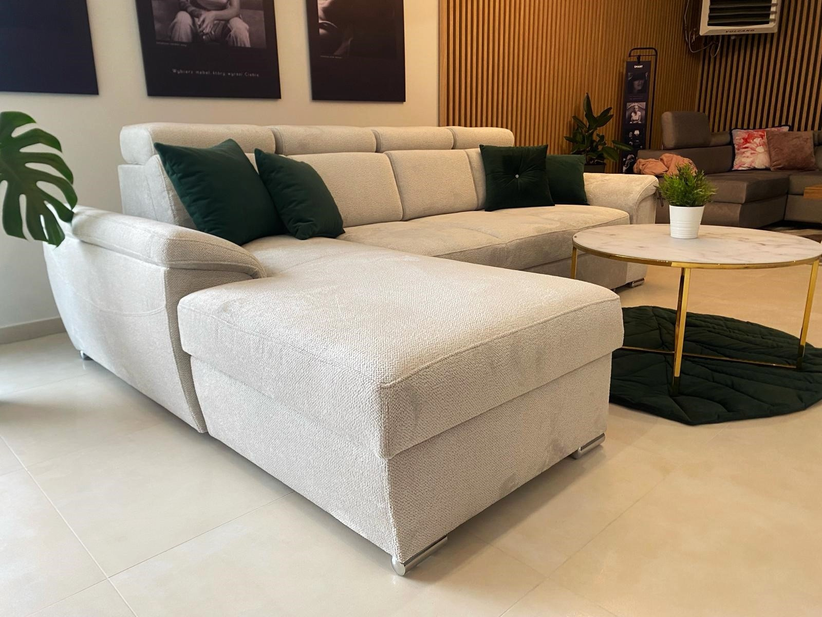 Narożnik Cayenne to nowoczesne a zarazem niebanalne wzornictwo. Dzięki swojemu wyglądowi idealnie nadaje się do prostych oraz niewielkich wnętrz. Wygodny szezlong zapewnia odpowiedni wypoczynek po całym dniu. \n \n \n \nSpecyfikacja: \n \n-Sprężyna falista, \n-Pianka wysokosprężysta HR, \n-Funkcja spania, \n-Pojemnik na pościel, \n-Regulowane zagłówki, \n-Nóżki metalowe. \n \n