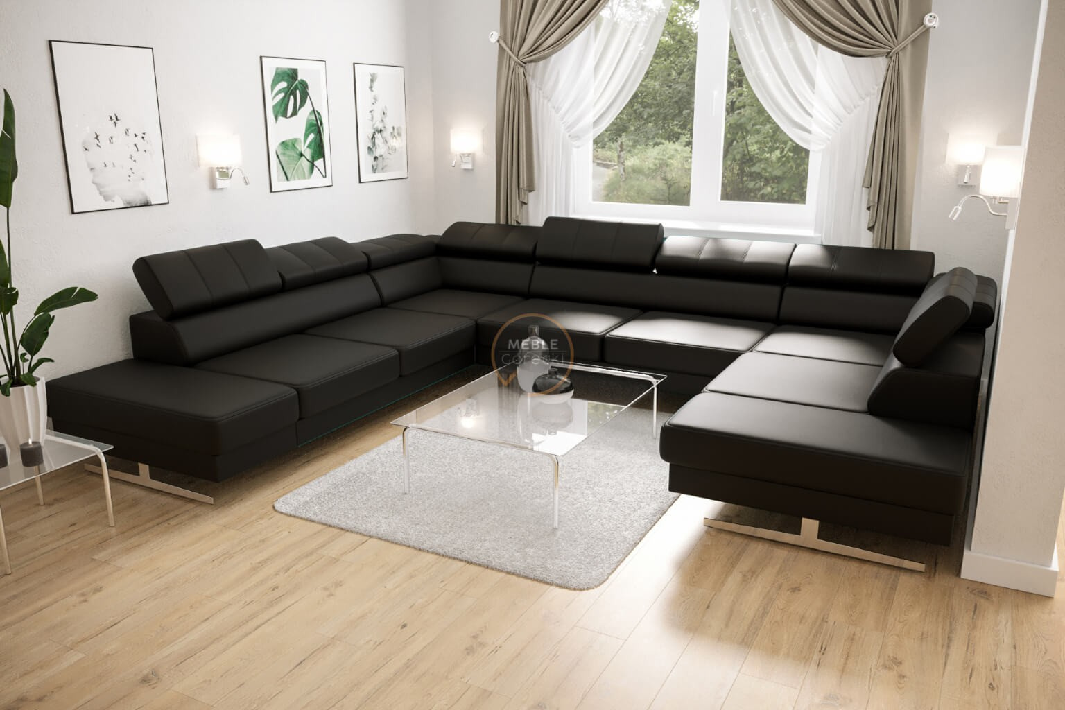 NAROŻNIK EMPORIO MAX I 300X350X220 - lewa , Eko Skóra Czarna