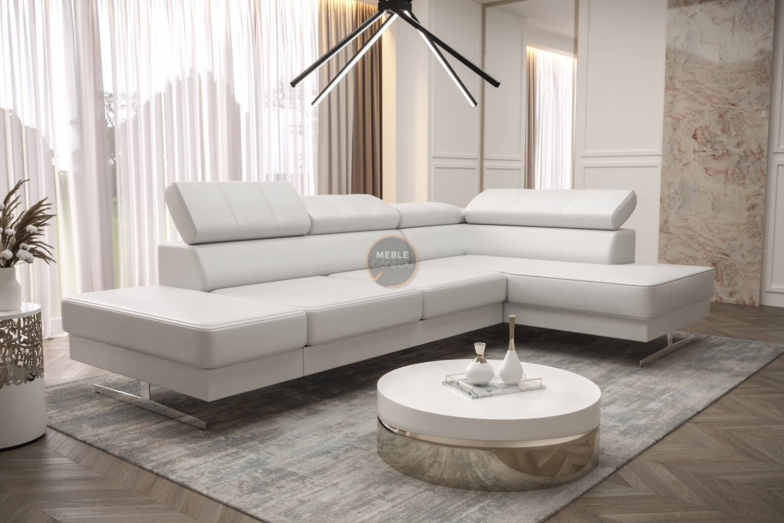 Narożnik Emporio Mini to coś, na co czekaliście od dawna. Zmodyfikowany model Royal na wysokich nóżkach. Wyposażyliśmy go w regulowane zagłówki, dzięki którym dopasujesz oparcie głowy do indywidualnej pozycji. Wysokie na szesnaście centymetrów ozdobne nogi dodają mu niebanalnego szyku i nonszalancji. Możesz mieć je w dwóch kolorach srebrnym lub czarnym. WYKONANIE Wszystkie elementy produktu narożnik Emporio Mini zostały obszyte grubym szwem, co stanowi ozdobę i wzmacnia połączenia tkanin. Siedziska zbudowaliśmy na sprężynach falistych oraz piance wysoko elastycznej (połączenie najlepszych jakościowo pianek T35 i HR), co sprawiło, że są one średnio miękkie a jednocześnie bardzo wytrzymałe. Stelaże wykonujemy z drewna i płyty meblowej, dlatego nasze meble są solidnie wykonane, a cena idzie zawsze w parze z jakością. WZORNIK SKÓR NATURALNYCH Zamawiając meble naszej produkcji możesz być pewien, że otrzymujesz produkt najwyższej jakości. Korzystamy jedynie ze skóry naturalnej licowej, a więc meble wykonane są z całych błamów zwierzęcych, dzięki czemu mebel zyskuje na trwałości. W porównaniu do innych producentów, my nie korzystamy z żadnych zastępczych materiałów. Nasze meble wykonane są w całości ze skóry naturalnej, także boki oraz tył (poza funkcją spania). W naszej pracy kierujemy się starannością i dbałością o najdrobniejszy szczegół. Madras jednokolorowy półmat, symbol K Madras antykowany połysk, cieniowana, symbole A, C, S Federica pół-połysk, symbol G Skóry mogą wykazywać delikatne różnice w kolorystyce, strukturze powierzchni i mogą posiadać drobne blizny. Wynika to z naturalnego środowiska, w którym żyły zwierzęta i nadaje skórze jak i meblom indywidualny charakterystyczny wygląd. Cechy te absolutnie nie mają wpływu na trwałość użytkową mebli a wręcz przeciwnie. Takie i podobne zaniki nie są wadą, a jedynie potwierdzeniem autentyczności naturalnej skóry. WIRTUALNA GALERIA Już teraz możesz obejrzeć nasze realizacje bez wychodzenia z domu, ponieważ udostępniliśmy dla Ciebie GALERIĘ. Możesz również śledzić nas na FACEBOOK. Miłego oglądania! Meble do samodzielnego montażu. Wszystkie meble wykonywane są pod indywidualne zamówienie. Prosimy o przemyślane zakupy. Towar nie podlega zwrotowi.