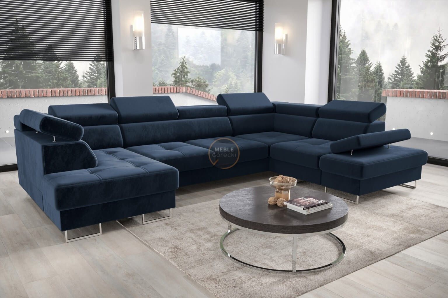 NAROŻNIK GALAXY MAX II Z FUNKCJĄ SPANIA 210x350x165 - Odcienie granatu , prawa