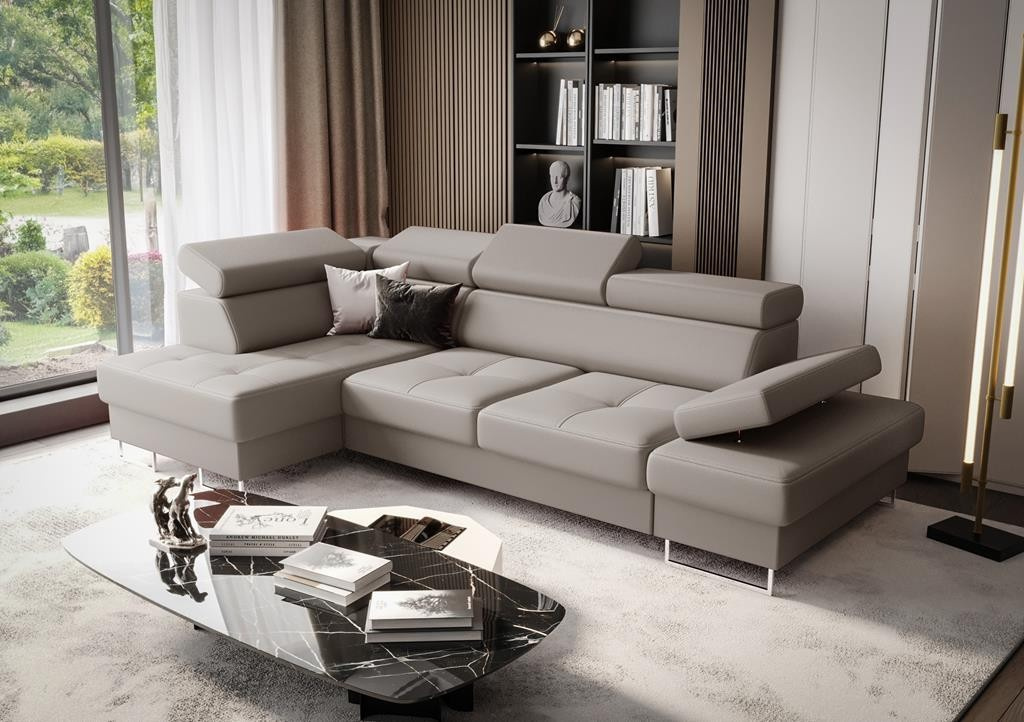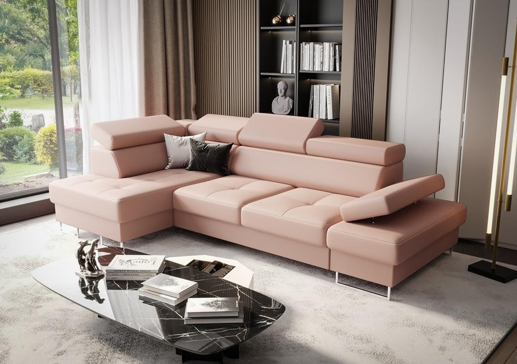 NAROŻNIK GALAXY MINI Z FUNKCJĄ SPANIA 170X280 SKÓRA NATURALNA Narożnik Galaxy to stylowa propozycja, która zachwyca prostą oraz ponadczasową formą z nutką nowoczesności. Cenisz sobie wygodę, ale nie chcesz rezygnować z nowoczesnego designu? Narożnik Galaxy łączy w sobie komfort i niebanalny wygląd, dzięki czemu spełni oczekiwania nawet najbardziej wymagających klientów. ZALETY MEBLA: Funkcję spania rozkładaną na automacie delfin- łatwo zmienisz sofę w łóżko dla gości Pojemnik na pościel wykonany w całości z płyty laminowanej- dodatkowe miejsce do przechowywania Ozdobne przeszycia i pikowanie na siedziskach- wykonana estetycznie z dbałością o najdrobniejszy szczegół Dwie wersje nóg do wyboru: metalowe ramki w kolorze srebrnym lub czarnym Regulowane zagłówki (zagłówek narożny stały)- pozwala na dopasowanie mebla do najwygodniejszej dla Ciebie pozycji Regulowany podłokietnik- dodatkowa możliwość dopasowania najwygodniejszej pozycji ciała podczas odpoczynku WYKONANIE Wszystkie elementy produktu zostały obszyte grubym szwem, co stanowi ozdobę i wzmacnia połączenia tkanin. Siedziska zbudowaliśmy na sprężynach falistych oraz piance wysoko elastycznej (połączenie najlepszych jakościowo pianek T35 i HR), co sprawiło, że są one średnio miękkie a jednocześnie bardzo wytrzymałe. Stelaże wykonujemy z drewna i płyty meblowej, dlatego nasze meble są solidnie wykonane, a cena idzie zawsze w parze z jakością. WZORNIK SKÓR NATURALNYCH Zamawiając meble naszej produkcji możesz być pewien, że otrzymujesz produkt najwyższej jakości. Korzystamy jedynie ze skóry naturalnej licowej, a więc meble wykonane są z całych błamów zwierzęcych, dzięki czemu mebel zyskuje na trwałości. W porównaniu do innych producentów, my nie korzystamy z żadnych zastępczych materiałów. Nasze meble wykonane są w całości ze skóry naturalnej, także boki oraz tył (poza funkcją spania). W naszej pracy kierujemy się starannością i dbałością o najdrobniejszy szczegół. Madras jednokolorowy półmat, symbol K Madras antykowany połysk, cieniowana, symbole A, C, S Federica pół-połysk, symbol G Skóry mogą wykazywać delikatne różnice w kolorystyce, strukturze powierzchni i mogą posiadać drobne blizny. Wynika to z naturalnego środowiska, w którym żyły zwierzęta i nadaje skórze jak i meblom indywidualny charakterystyczny wygląd. Cechy te absolutnie nie mają wpływu na trwałość użytkową mebli a wręcz przeciwnie. Takie i podobne zaniki nie są wadą, a jedynie potwierdzeniem autentyczności naturalnej skóry. WIRTUALNA GALERIA Już teraz możesz obejrzeć nasze realizacje bez wychodzenia z domu, ponieważ udostępniliśmy dla Ciebie GALERIĘ. Możesz również śledzić nas na FACEBOOK. Miłego oglądania! Mebel z funkcją rozkładania do spania okazjonalnego. Do spania codziennego rekomendujemy sofy typu DL. Funkcja spania wykonywana jest w tkaninie zastępczej. Wszystkie meble wykonywane są pod indywidualne zamówienie. Prosimy o przemyślane zakupy. Towar nie podlega zwrotowi. Meble do samodzielnego montażu.