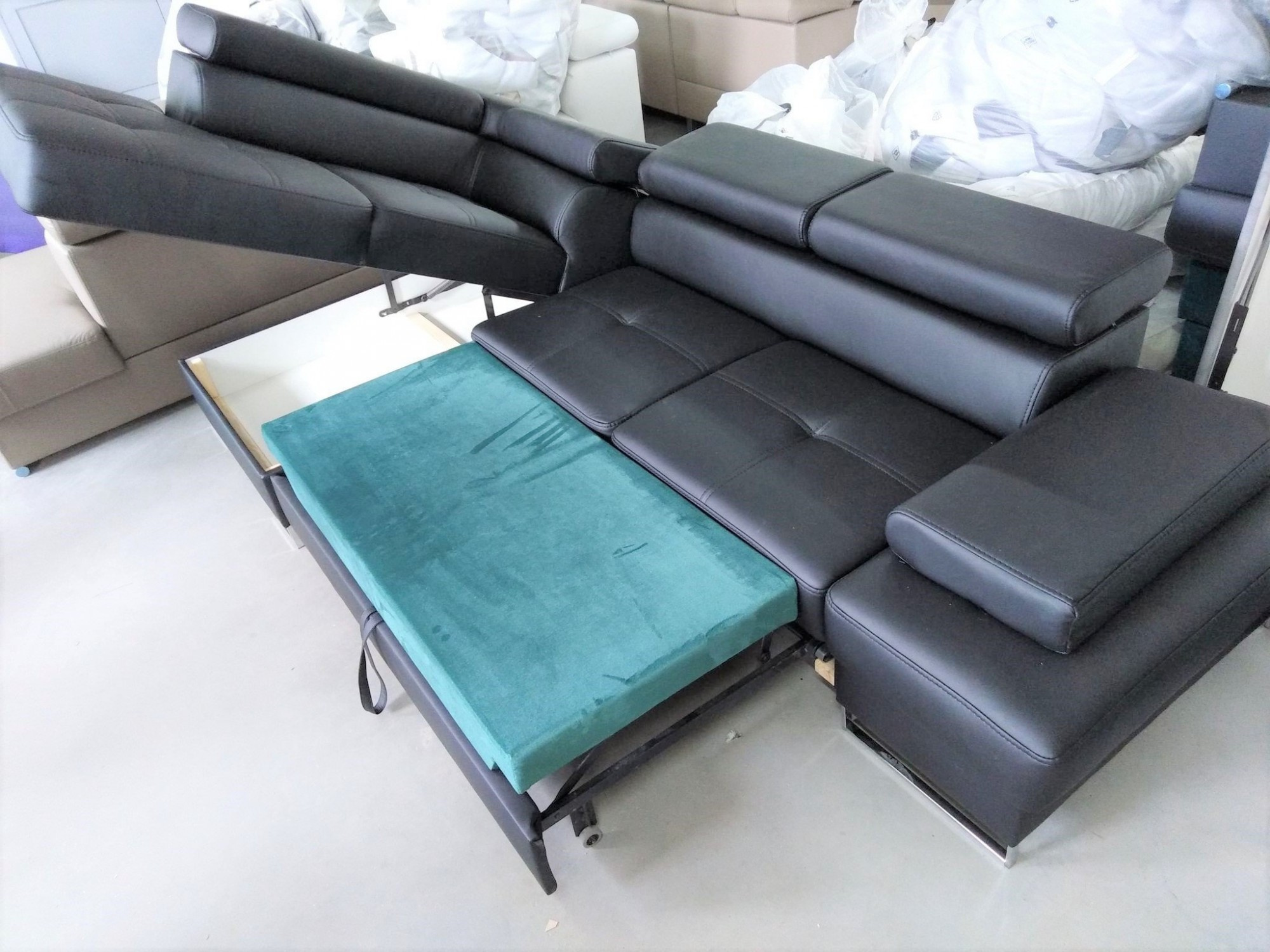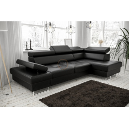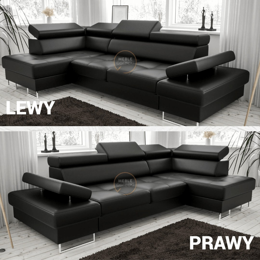 NAROŻNIK GALAXY MINI Z FUNKCJĄ SPANIA 170X280 SKÓRA NATURALNA - Skóra czarna , prawa