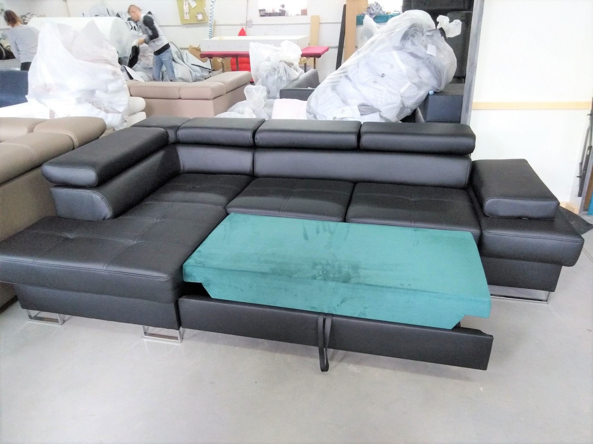 NAROŻNIK GALAXY MINI Z FUNKCJĄ SPANIA 170X280 SKÓRA NATURALNA Narożnik Galaxy to stylowa propozycja, która zachwyca prostą oraz ponadczasową formą z nutką nowoczesności. Cenisz sobie wygodę, ale nie chcesz rezygnować z nowoczesnego designu? Narożnik Galaxy łączy w sobie komfort i niebanalny wygląd, dzięki czemu spełni oczekiwania nawet najbardziej wymagających klientów. ZALETY MEBLA: Funkcję spania rozkładaną na automacie delfin- łatwo zmienisz sofę w łóżko dla gości Pojemnik na pościel wykonany w całości z płyty laminowanej- dodatkowe miejsce do przechowywania Ozdobne przeszycia i pikowanie na siedziskach- wykonana estetycznie z dbałością o najdrobniejszy szczegół Dwie wersje nóg do wyboru: metalowe ramki w kolorze srebrnym lub czarnym Regulowane zagłówki (zagłówek narożny stały)- pozwala na dopasowanie mebla do najwygodniejszej dla Ciebie pozycji Regulowany podłokietnik- dodatkowa możliwość dopasowania najwygodniejszej pozycji ciała podczas odpoczynku WYKONANIE Wszystkie elementy produktu zostały obszyte grubym szwem, co stanowi ozdobę i wzmacnia połączenia tkanin. Siedziska zbudowaliśmy na sprężynach falistych oraz piance wysoko elastycznej (połączenie najlepszych jakościowo pianek T35 i HR), co sprawiło, że są one średnio miękkie a jednocześnie bardzo wytrzymałe. Stelaże wykonujemy z drewna i płyty meblowej, dlatego nasze meble są solidnie wykonane, a cena idzie zawsze w parze z jakością. WZORNIK SKÓR NATURALNYCH Zamawiając meble naszej produkcji możesz być pewien, że otrzymujesz produkt najwyższej jakości. Korzystamy jedynie ze skóry naturalnej licowej, a więc meble wykonane są z całych błamów zwierzęcych, dzięki czemu mebel zyskuje na trwałości. W porównaniu do innych producentów, my nie korzystamy z żadnych zastępczych materiałów. Nasze meble wykonane są w całości ze skóry naturalnej, także boki oraz tył (poza funkcją spania). W naszej pracy kierujemy się starannością i dbałością o najdrobniejszy szczegół. Madras jednokolorowy półmat, symbol K Madras antykowany połysk, cieniowana, symbole A, C, S Federica pół-połysk, symbol G Skóry mogą wykazywać delikatne różnice w kolorystyce, strukturze powierzchni i mogą posiadać drobne blizny. Wynika to z naturalnego środowiska, w którym żyły zwierzęta i nadaje skórze jak i meblom indywidualny charakterystyczny wygląd. Cechy te absolutnie nie mają wpływu na trwałość użytkową mebli a wręcz przeciwnie. Takie i podobne zaniki nie są wadą, a jedynie potwierdzeniem autentyczności naturalnej skóry. WIRTUALNA GALERIA Już teraz możesz obejrzeć nasze realizacje bez wychodzenia z domu, ponieważ udostępniliśmy dla Ciebie GALERIĘ. Możesz również śledzić nas na FACEBOOK. Miłego oglądania! Mebel z funkcją rozkładania do spania okazjonalnego. Do spania codziennego rekomendujemy sofy typu DL. Funkcja spania wykonywana jest w tkaninie zastępczej. Wszystkie meble wykonywane są pod indywidualne zamówienie. Prosimy o przemyślane zakupy. Towar nie podlega zwrotowi. Meble do samodzielnego montażu.