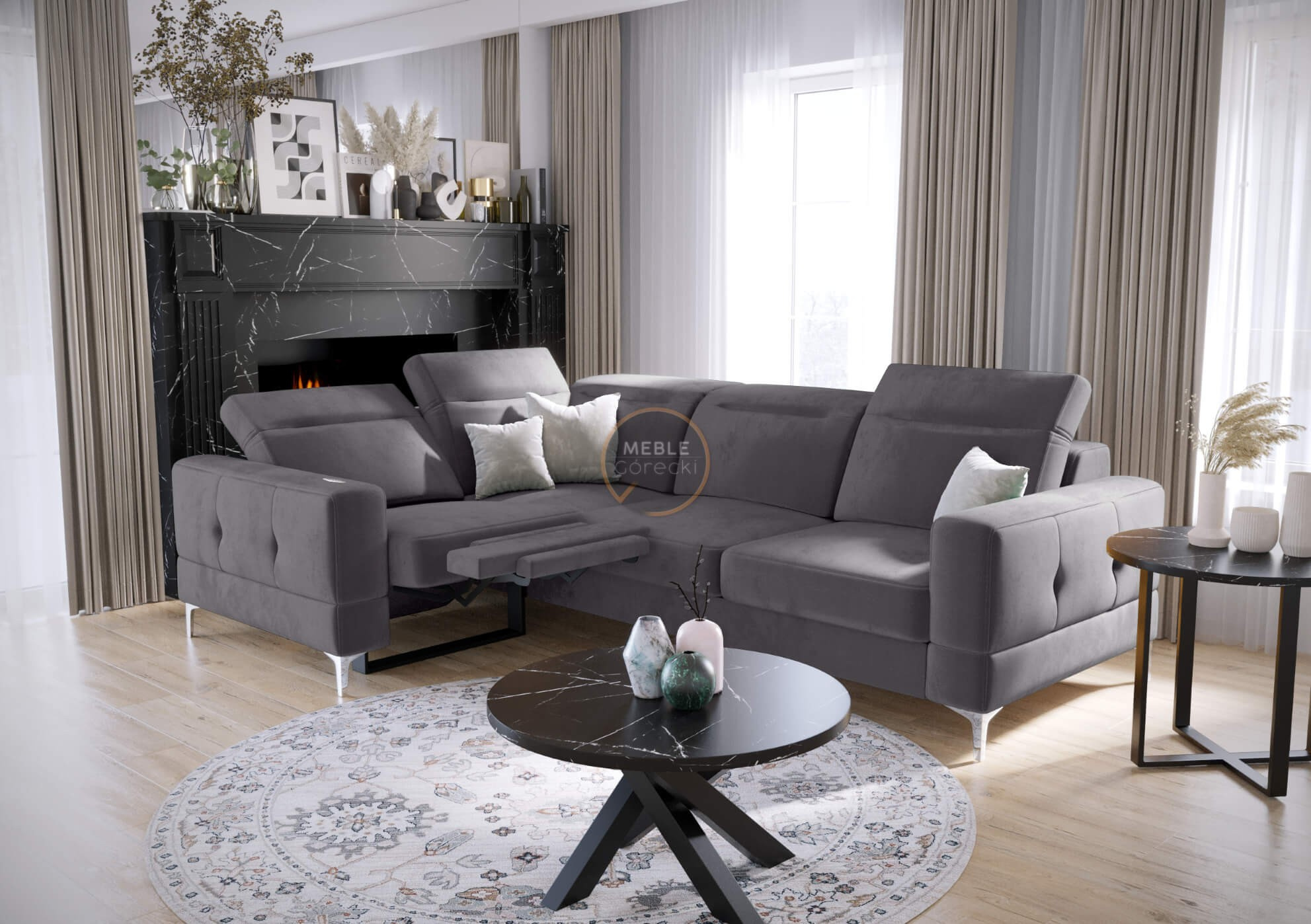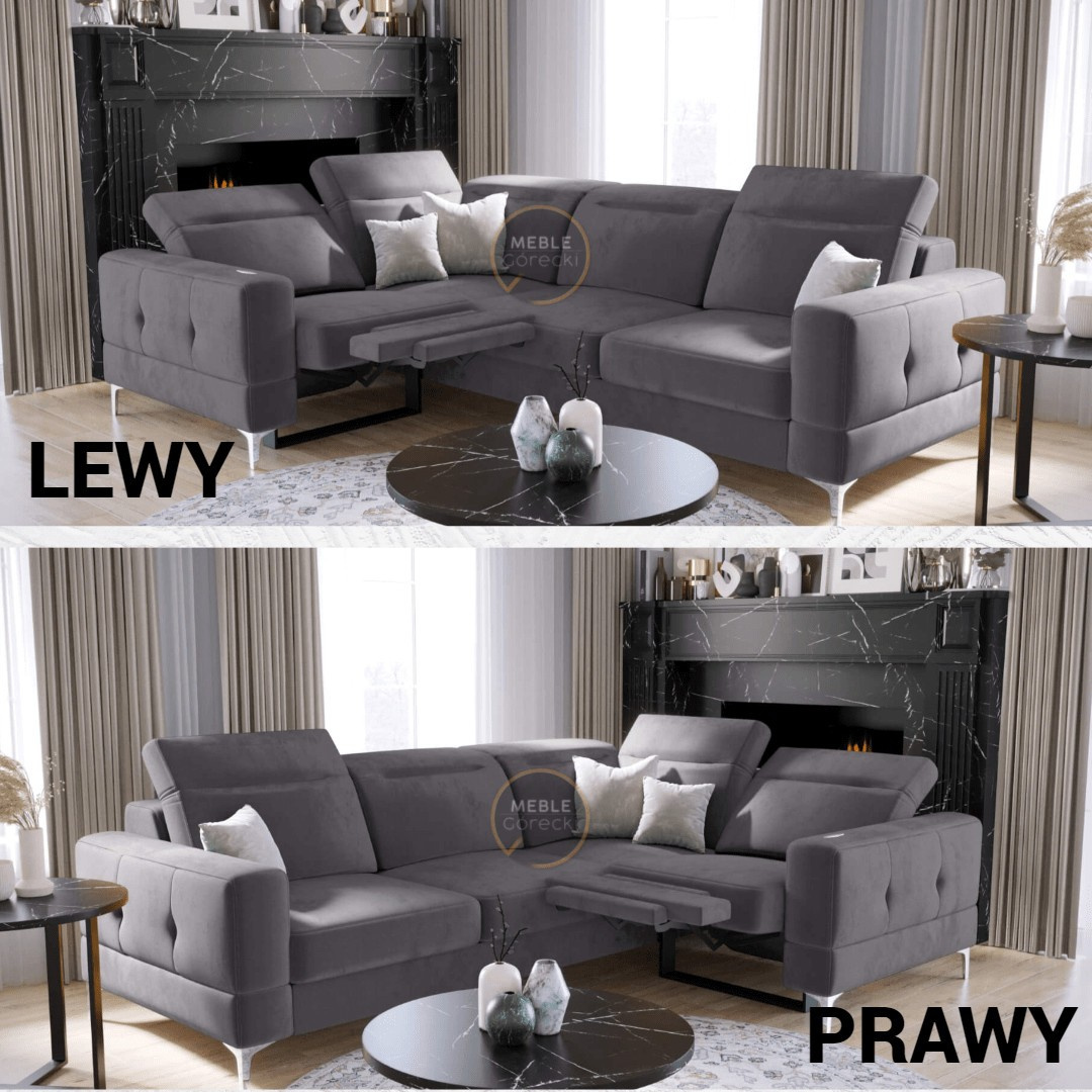 NAROŻNIK MALIBU RELAX Z FUNKCJĄ SPANIA 185x250 CM - lewa , Odcienie szarości