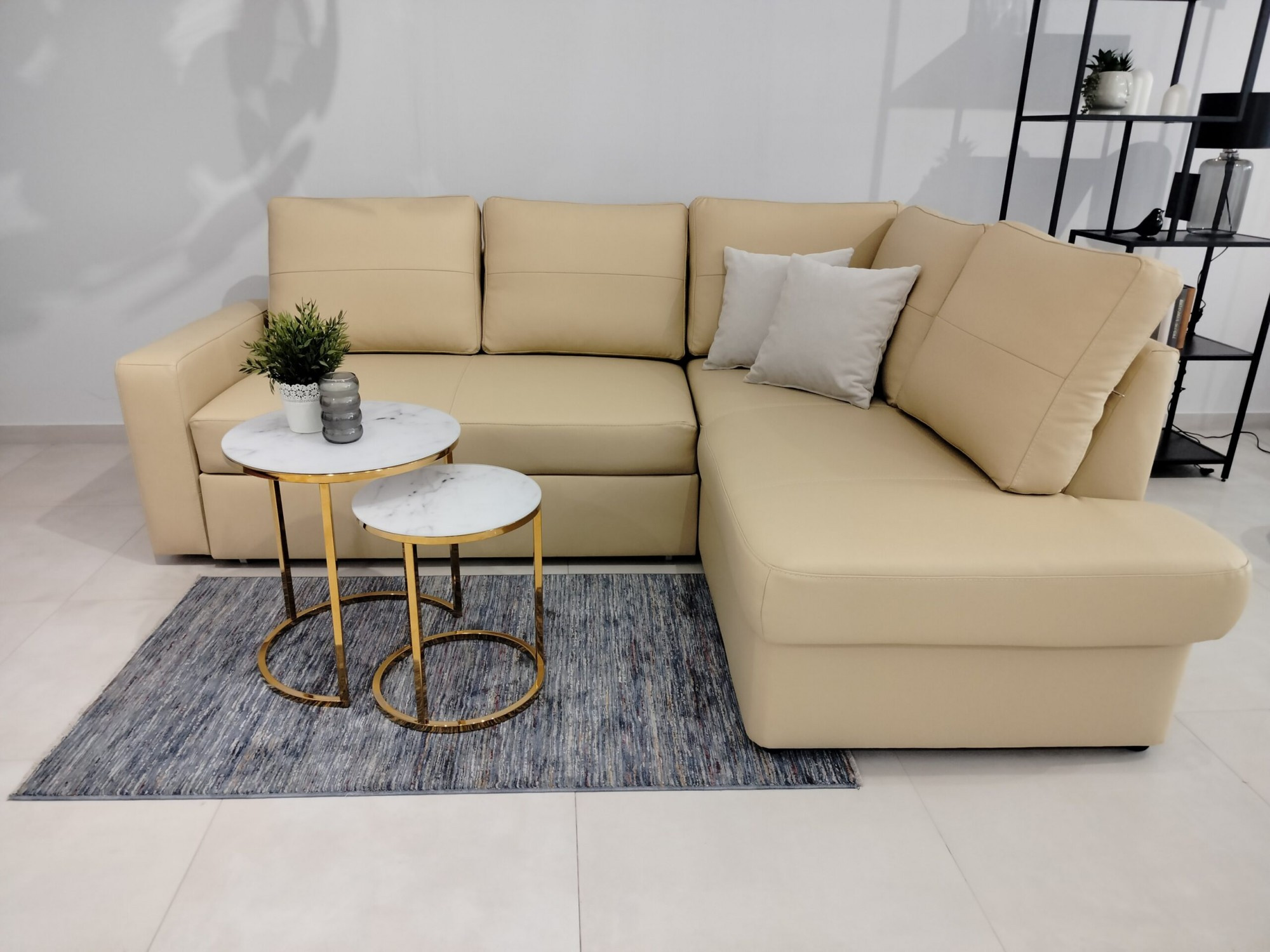 Narożnik Modern to nowoczesne a zarazem niebanalne wzornictwo. Dzięki swojemu wyglądowi idealnie nadaje się do prostych oraz niewielkich wnętrz. Swoją prostotą oraz delikatnymi szyciami na poduszkach dodaje uroku. \n \n \n \nSpecyfikacja: \n \n- Sprężyna bonelowa, \n- Funkcja spania, \n- Pianka wysokosprężysta HR, \n- Pojemnik na pościel. \n \n* meble wykonywane pod indywidualne zamówienie - termin realizacji zamówienia od 3 do 6 tygodni