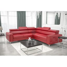 NAROŻNIK ORION I Z FUNKCJĄ SPANIA 255×255 CM SKÓRA NATURALNA - Skóra czerwona , prawa