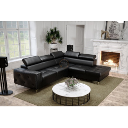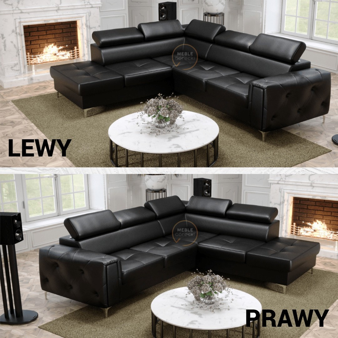 NAROŻNIK ORION II Z FUNKCJĄ SPANIA 225x255 CM SKÓRA NATURALNA - Skóra czarna , Strona prawa