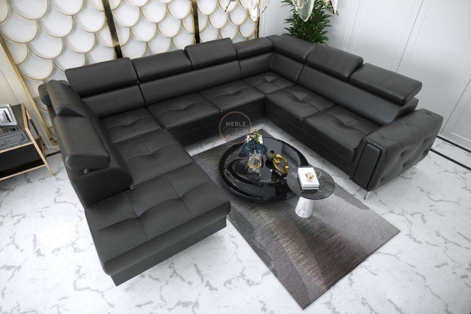 NAROŻNIK ORION MAX I Z FUNKCJĄ SPANIA 225X350X255 CM SKÓRA NATURALNA - Skóra czarna , Strona prawa