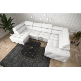 NAROŻNIK ORION MAX II Z FUNKCJĄ SPANIA 165X350X185 CM SKÓRA NATURALNA - Skóra biała , prawa