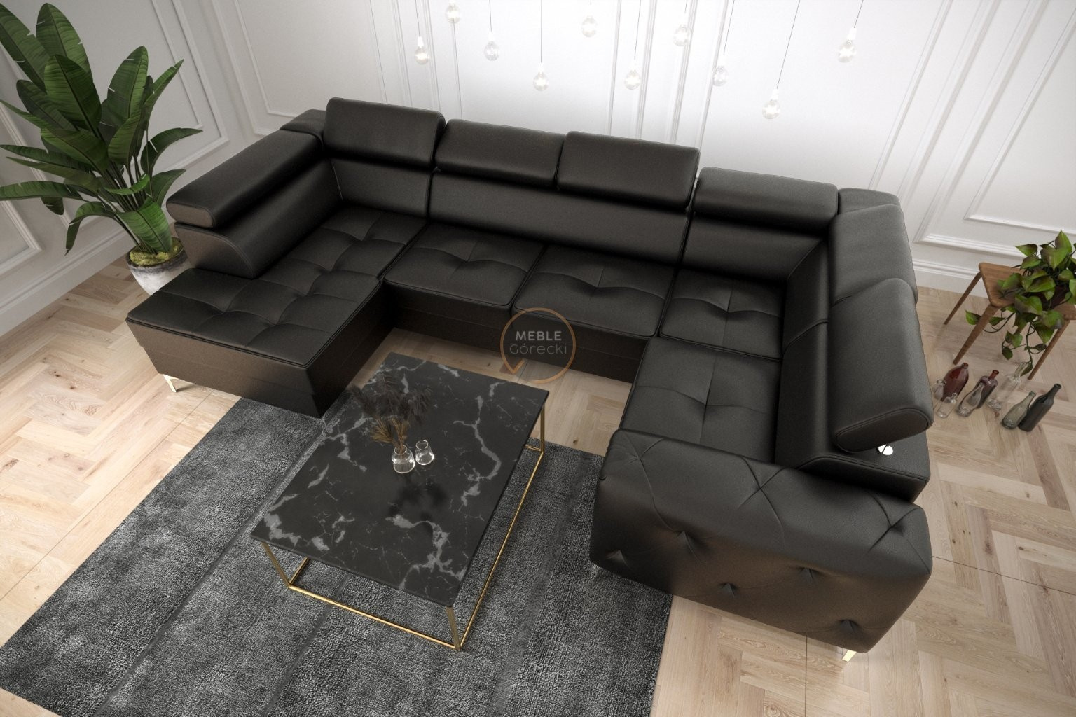 NAROŻNIK ORION MAX II Z FUNKCJĄ SPANIA 165X350X185 CM SKÓRA NATURALNA - Skóra czarna , prawa