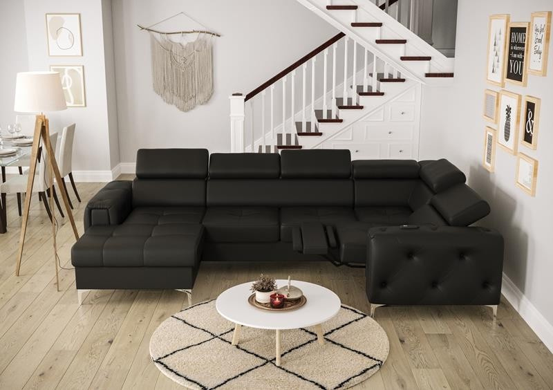 NAROŻNIK ORION MAX III RELAX Z FUNKCJĄ SPANIA 165x320x190 SKÓRA NATURALNA - Skóra czarna , lewa