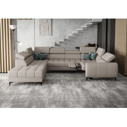 NAROŻNIK PORTO MAX I RELAX SKÓRA NATURALNA 225x350X193 CM - lewa , Skóra szara
