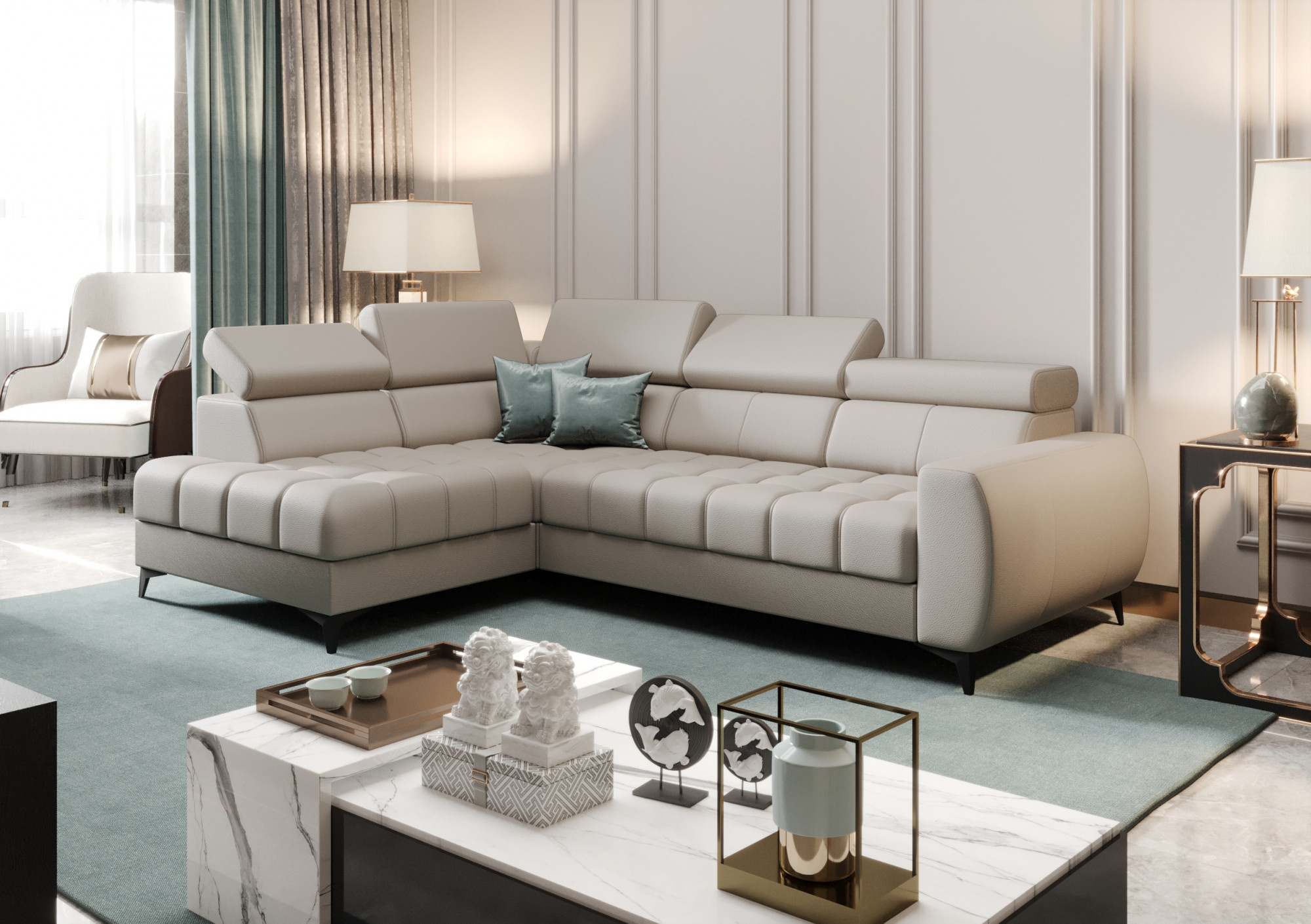 Narożnik Porto Mini W czasach, gdy moda szybko się zmienia i ciężko za nią nadążyć, staraliśmy się zaprojektować dla Was mebel, który będzie łączył w sobie charakterystyczną bryłę przy jednoczesnym zachowaniu klasycznej linii. Jego delikatnie zaokrąglone boki, bąbelkowe siedzisko oraz metalowe nogi podkreślą charakter wnętrza ale też dodają mu przytulności. Estetyka tego modelu pozwala na wykorzystanie go w zarówno klasycznych jak i nowoczesnych przestrzeniach. To wszystko sprawiło, że Porto to inwestycja na długie lata Praktyczne rozwiązania Nasz narożnik tapicerowany zapewnia wygodne miejsca zarówno do siedzenia jak i spania. Sprawdzi się w dzień jako wygodne miejsce do siedzenia. W nocy z kolei może zmienić się w dodatkowe miejsce do spania dla gości. Funkcja spania wykorzystana w tym narożniku służy do spania okazjonalnego. Mebel posiada także pakowany pojemnik na pościel. Regulowane zagłówki pozwalają na dostosowanie możliwie najwygodniejszej pozycji do indywidualnych upodobań, zapewniając maksymalny komfort wypoczynku. Wysokie nóżki w dwóch opcjach kolorystycznych (srebrne i czarne) nie tylko stanowią oryginalny walor estetyczny, ale także ułatwiają sprzątanie. Model wolnostojący z tapicerowanym tyłem, który możesz ustawić w dowolnej części pokoju. Zapewnij sobie komfort i styl z narożnikiem Porto– doskonałym wyborem dla wszystkich tych, którzy cenią sobie funkcjonalność i styl. Dbałość o jakość Porto jest gotowy, aby sprostać wymaganiom naszych wymagających klientów. Z myślą o codziennym użytkowaniu, narożnik jest wykonany z najwyższej jakości pianek tapicerskich T35 oraz wierzchniej warstwy pianki wysokoelastycznej HR. W połączeniu ze sprężynami falistymi typu B, mebel jest wyjątkowo trwały, odporny na odkształcenia oraz długo zachowuje swój estetyczny wygląd. Jako polski producent, oferujemy Państwu produkty najwyższej jakości, wykonane z dbałością o każdy szczegół. Wieloletnie doświadczenie pozwala nam na zastosowanie jak najlepszych rozwiązań przy projektowaniu i tworzeniu mebli dla Waszych domów. Wzornik skór naturalnych Zamawiając meble naszej produkcji możesz być pewien, że otrzymujesz produkt najwyższej jakości. Korzystamy jedynie ze skóry naturalnej licowej. Meble wykonane są z całych błamów zwierzęcych, dzięki czemu zyskują na trwałości. W porównaniu do innych producentów, my nie korzystamy z żadnych zastępczych materiałów. Nasze meble wykonane są w całości ze skóry naturalnej, także boki oraz tył (poza funkcją spania). W naszej pracy kierujemy się starannością i dbałością o najdrobniejszy szczegół. Madras jednokolorowy półmat, symbol K Madras antykowany połysk, cieniowana, symbole A, C, S Federica pół-połysk, symbol G Skóry mogą wykazywać delikatne różnice w kolorystyce, strukturze powierzchni i mogą posiadać drobne blizny. Wynika to z naturalnego środowiska, w którym żyły zwierzęta i nadaje skórze jak i meblom indywidualny charakterystyczny wygląd. Cechy te absolutnie nie mają wpływu na trwałość użytkową mebli a wręcz przeciwnie. Takie i podobne zaniki nie są wadą, a jedynie potwierdzeniem autentyczności naturalnej skóry. Madras jednokolorowy półmat, symbol K– doskonale sprawdza się jako materiał na obicia mebli, które mają służyć przez długie lata, jednocześnie zachowując swój prestiżowy wygląd. Materiał ten charakteryzuje się wysoką odpornością na ścieranie, co jest kluczowym czynnikiem w wyborze tapicerki do codziennego użytku. Naturalny wzór skóry Madras dodaje każdemu meblowi unikalnego charakteru. Oferując szeroką gamę barw, pozwala na dopasowanie do każdego stylu wnętrza – od klasycznych po nowoczesne. Z biegiem czasu skóra ta rozwija patynę, która podnosi jej walory estetyczne. Skóra naturalna to materiał oddychający, który zapewnia niezrównany komfort użytkowania. Tapicerka wykonana ze skóry Madras jest miękka i przyjemna w dotyku, co przekłada się na wygodę i zadowolenie użytkowników. Meble tapicerowane skórą Madras są nie tyko luksusowe, ale tez proste w utrzymaniu czystości. Regularne czyszczenie oraz właściwa pielęgnacja gwarantują, że skóra zachowa swoje właściwości i wygląd przez długie lata. Inwestowanie w meble i detale tapicerowane skórą Madras to inwestycja w przyszłość Twojego wnętrza. Produkty te nie tylko pięknie się starzeją, ale także zyskują na wartości, przynosząc zadowolenie z użytkowania na wiele lat. Dane techniczne: Materiał: skóra jednotonowa - jednobarwna Kolor: jednolity, matowy Grubość: 0,8 – 1,1mm Średnia wielkość błamów: 3 – 5 m2 Wytrzymałość na naprężenia: 10N/mm2 Siła do rozerwania: 20N Trwałość koloru w sztucznym świetle: 4 Trwałość koloru na tarcie: na sucho 4, na mokro 4 Czyszczenie i pielęgnacja: odkurzanie, używając środki do czyszczenia i pielęgnacji skóry, nie używać odplamiaczy. Madras antykowany połysk, cieniowana, symbole A, C, S– skóra naturalna dwutonowa (cieniowany/antyczny), bardzo mocna i wytrzymała. Skóra naturalna zabarwiona dwubarwnym, mieniącym się kolorem i zabezpieczona lakierem impregnującym, który podwyższa wytrzymałość na przecieranie oraz chroni przed skutkami codziennego korzystania. Charakteryzuje się drobną fakturą tłoczenia i dwukolorowym wybarwieniem. Klasyczny gatunek skóry z całkowitą korektą lica (wierzchnia warstwa) o grubości 0,8 – 1,1 mm. Dane techniczne: Materiał: skóra dwutonowa - jednobarwna Kolor: jednolity, matowy Grubość: 0,8 – 1,1mm Średnia wielkość błamów: 3 – 5 m2 Wytrzymałość na naprężenia: 10N/mm2 Siła do rozerwania: 20N Trwałość koloru w sztucznym świetle: 4 Trwałość koloru na tarcie: na sucho 4, na mokro 4 Czyszczenie i pielęgnacja: odkurzanie, używając środki do czyszczenia i pielęgnacji skóry, nie używać odplamiaczy. URUGWAJ, symbol U 