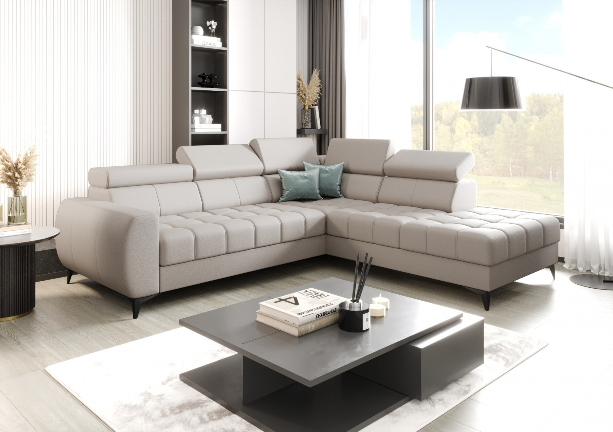NAROŻNIK PORTO SKÓRA NATURALNA 225x255 CM - prawa , Skóra szara