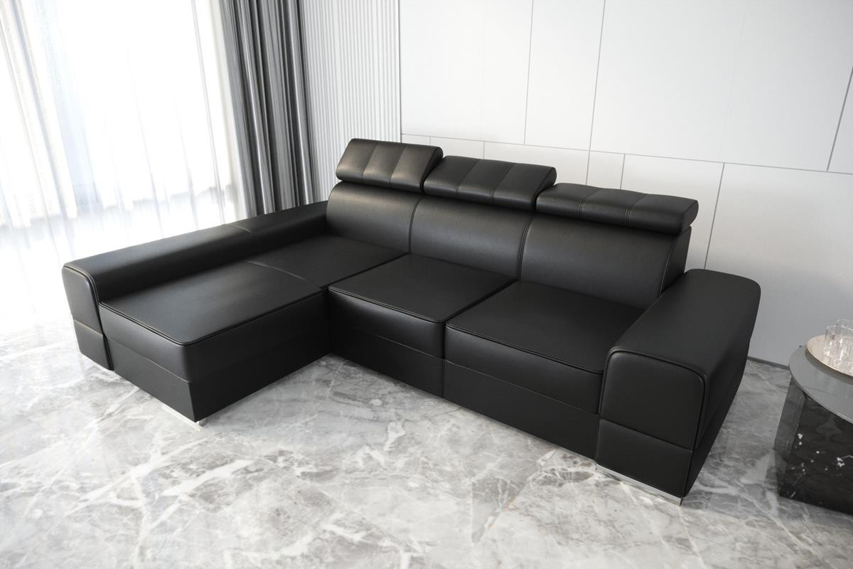 NAROŻNIK ROYAL SKÓRA NATURALNA 295×185 Narożnik Royal skóra naturalna to luksusowy i praktyczny mebel, który może stać się centralnym punktem każdego salonu. To prawdziwa perełka wśród swojej klasy. Szczególną uwagę przykuwają zagłówki, których przeszycie stanowi dodatkową ozdobę. Jeśli szukasz idealnego rozwiązania do swojego salonu, które połączy elegancję, komfort i funkcjonalność, to narożnik skórzany z funkcją spania Royal jest dokładnie tym, czego potrzebujesz. Ten mebel nie tylko zachwyci swoją estetyką, ale również sprawi, że Twoje wnętrze stanie się bardziej praktyczne. Przekonaj się, dlaczego warto zainwestować w narożnik Royal i jak może on odmienić Twoje życie codzienne. Ten narożnik został wyposażony w regulowane zagłówki, pojemnik na pościel i funkcję spania. Komfort użytkowania narożnika Royal to kolejny atut. Dzięki ergonomicznemu kształtowi mebel ten zapewnia wygodę podczas codziennego relaksu. Dodatkowo, funkcja spania sprawia, że narożnik staje się niezwykle praktyczny, szczególnie w niewielkich mieszkaniach, gdzie każdy metr kwadratowy jest na wagę złota. Jednym z największych atutów narożnika Royal jest jego funkcja spania. W kilka sekund możesz przekształcić go w wygodne łóżko, co jest idealnym rozwiązaniem, gdy masz gości. Mechanizm rozkładania jest intuicyjny i nie wymaga dużego wysiłku, dzięki czemu każdy poradzi sobie z tą czynnością bez problemu. Wykonanie Narożnik skórzany wykonany z wysokiej jakości skóry naturalnej, która jest trwała, elegancka i łatwa do utrzymania w czystości. Ten materiał sprowadzamy z Włoch. Skóra naturalna starzeje się z klasą, dodając wnętrzu charakteru. Skórzane meble zawsze były synonimem luksusu i elegancji. Narożnik Royal nie jest wyjątkiem – wykonany z najwyższej jakości skóry, oferuje wyjątkowy wygląd i dotyk, który dodaje prestiżu każdemu wnętrzu. Skórzana tapicerka nie tylko wygląda świetnie, ale także starzeje się z klasą, nabierając z czasem charakteru. Wszystkie elementy produktu zostały obszyte grubym szwem, co stanowi ozdobę i wzmacnia połączenia tkanin. Siedziska zbudowaliśmy na sprężynach falistych oraz piance wysoko elastycznej (połączenie najlepszych jakościowo pianek T35 i HR), co sprawiło, że są one średnio miękkie a jednocześnie bardzo wytrzymałe. Stelaże wykonujemy z drewna i płyty meblowej, dlatego nasze meble są solidnie wykonane, a cena idzie zawsze w parze z jakością. Narożnik skórzany z funkcją spania Royal to elegancki i funkcjonalny mebel, który może znacząco podnieść komfort Twojego salonu. Dzięki połączeniu stylowego designu, wysokiej jakości materiałów i praktycznych funkcji, takich jak rozkładane łóżko, jest idealnym wyborem dla tych, którzy szukają zarówno estetyki, jak i wygody. Szerokiej gama kolorów sprawia, że narożnik Royal doskonale wpasuje się w każde wnętrze. Niezależnie od tego, czy Twoje mieszkanie urządzone jest w stylu skandynawskim, industrialnym, czy klasycznym, znajdziesz model, który idealnie komponuje się z resztą wyposażenia. Jeśli nie jesteś pewien, którą skórę wybrać, nie przejmuj się. Na prośbę klienta udostępniamy próbniki skór. Wystarczy skontaktować się z naszym biurem obsługi klienta aby uzyskać szczegóły lub skontaktować się z nami drogą email. W ciągu kilku dni roboczych (po wskazaniu adresu doręczenia) otrzymasz od nas próbniki. Wzornik skór naturalnych: Madras jednokolorowy półmat, symbol K. Madras antykowany połysk, cieniowana, symbole A, C, S. Federica półpołysk, symbol G. Skóry wykazują delikatne różnice w kolorystyce, strukturze powierzchni i mogą posiadać drobne blizny. Wynika to z naturalnego środowiska, w którym żyją zwierzęta i nadaje skórze jak i meblom indywidualny charakterystyczny wygląd. Cechy te absolutnie nie mają wpływu na trwałość użytkową mebli a wręcz przeciwnie. Takie i podobne zaniki nie są wadą, a jedynie potwierdzeniem autentyczności naturalnej skóry. Prosimy o przemyślane zakupy. Meble ze skóry naturalnej wykonywane na zamówienie indywidualne i nie podlegają zwrotowi. Mebel z funkcją rozkładania do spania okazjonalnego. Do spania codziennego rekomendujemy sofy typu DL. Funkcja spania wykonywana jest w tkaninie zastępczej.