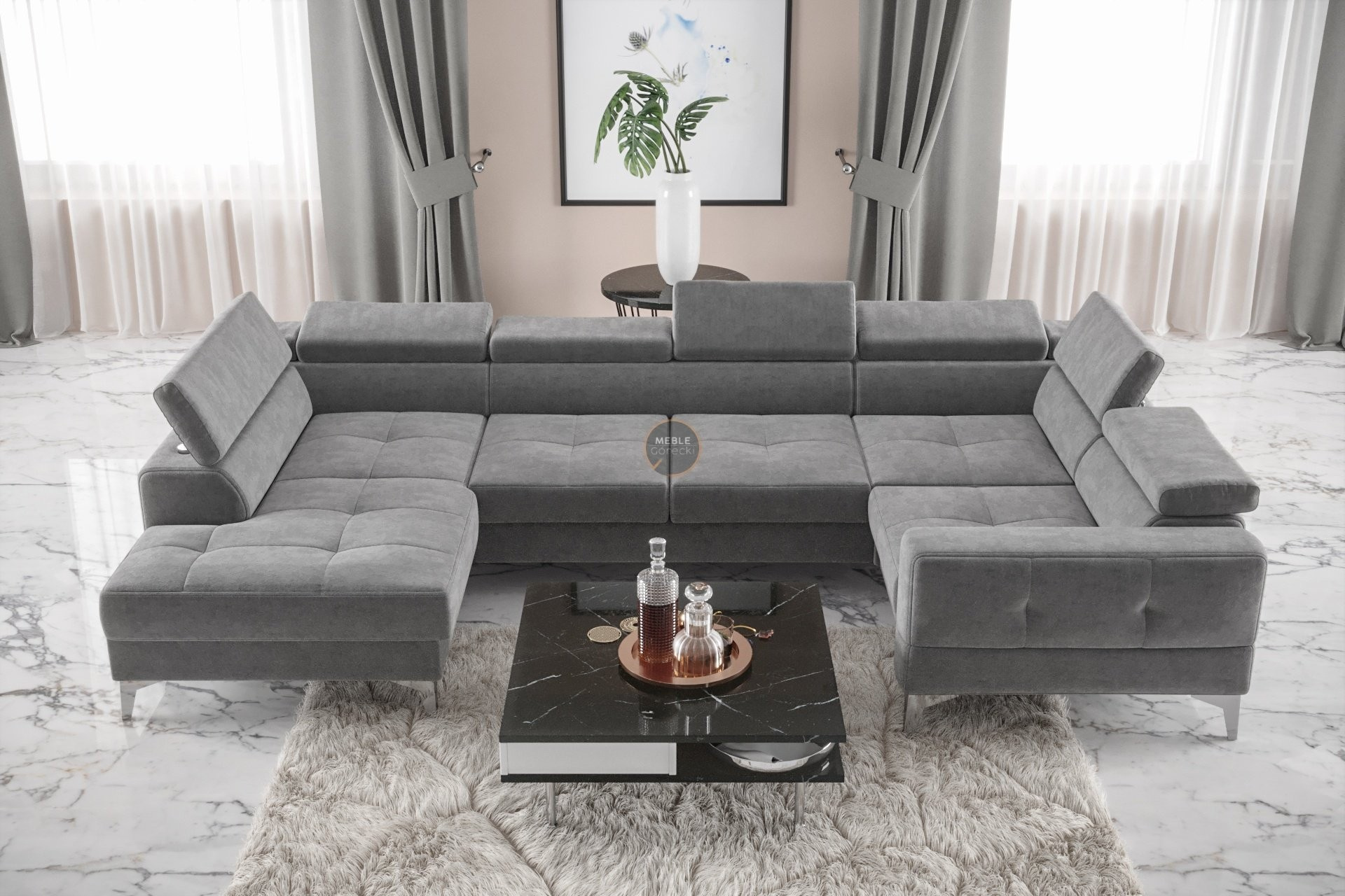 NAROŻNIK ROZKŁADANY TOSCANIA MAX I 170x350x185 CM - prawa , Odcienie szarości