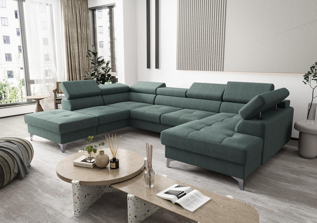 NAROŻNIK ROZKŁADANY TOSCANIA MAX II 170x350x220 Narożnik Toscania Max II to niezwykle elegancki mebel, dzięki któremu Twój salon otrzyma zupełnie nowy nietuzinkowy wygląd. Rogówka na wysokich nóżkach z pikowanymi siedziskami oraz regulowanymi zagłówkami doskonale wkomponuje się zarówno w nowoczesne jak również klasyczne wnętrza. Model Max II z pewnością pomieści całą rodzinę przed telewizorem czy gości na domowym przyjęciu. Jeśli szukasz niebanalnego stylu, koniecznie zatrzymaj się przy tym modelu. Nasz zespół przedstawi Ci szeroką ofertę możliwości dzięki czemu maksymalnie dopasujemy produkt do Twoich potrzeb. Sprawdź nasze pozostałe narożniki w kształcie litery U. Narożnik jest wyposażony w funkcję spania oraz pojemnik na pościel. Kolejnym benefitem jest budowa siedziska, dzięki której uzyskaliśmy niezwykły komfort użytkowania, gwarantują go sprężyny faliste oraz pianka wysoko-elastyczna. Wszystkie elementy zostały obszyte grubym szwem, co stanowi zarówno ozdobę jak również wzmacnia połączenia tkanin. Stelaże wszystkich naszych mebli są wykonane z drewna i płyty meblowej, siedziska natomiast i elementy silnie obciążone zbudowane zostały na ramach drewnianych dzięki czemu są niezwykle wytrzymałe. Ogromną zaletą kupowania u nas jest fakt, że otrzymujesz mebel wykonany według Twoich preferencji. Sam wybierasz tkaninę. Ty decydujesz czy meble zostaną wykonane z eko skóry, dzianiny, weluru a może welwetu? Przede wszystkim jednak u nas otrzymujesz produkt od producenta, wykonany z najwyższą starannością z najwyższej jakości materiałów. Już teraz możesz oglądać nasze gorące realizacje różnych systemów mebli w specjalnie przygotowanej GALERII, dzięki której odwiedzisz nas bez wychodzenia z domu. Mebel z funkcją rozkładania do spania okazjonalnego. Do spania codziennego rekomendujemy sofy typu DL. Funkcja spania wykonywana jest w tkaninie zastępczej. Dostępne tkaniny G pokryta jest specjalną warstwą ochronną, tworząca hydrofobową powłokę zabezpieczającą przed szybkim przesiąkaniem płynów. Zapobiega to natychmiastowemu absorbowaniu wody przez tkaninę, sprawiając że ciecz skrapla się na powierzchni materiału. Dzięki temu mamy czas na to, aby przy użyciu miękkiej ściereczki bądź ręcznika papierowego, delikatnie odsączyć rozlaną ciecz. Dopuszcza się występowanie różnic pomiędzy poszczególnymi partiami materiałów. Gramatura m2: 370 g/m2+/- 5% Skład: 100% Polyester Test Martindale: Yarn breakage: 60 000 Przesuwalność nitek: 2,3 mm WARP 2 mm WEFT Skłonność do mechacenia i peelingu: 4-5 Odporność na tarcie suche: 5 Odporność na tarcie mokre: 4-5 MT wyprodukowana została z wysokiej jakości poliuretanu, dlatego też w dotyku rewelacyjnie imituje drogie skóry naturalne. Lico materiału MT ma delikatne matowe ziarno i może być zginane czy nawet rozciągane. Nie spowoduje to żadnych trwałych zmarszczek na tkaninie. Dopuszcza się występowanie różnic pomiędzy poszczególnymi partiami materiałów. Gramatura m2: 400 g/m2+/- 10% Skład: Surface: 100% PU | Base fabric: 75% PES 25% CO (+/-10%) Test Martindale: Yarn breakage: 102 400 Odporność na tarcie suche: 5 Odporność na tarcie mokre: 5 MY to nasza odpowiedź na bardzo modne ostatnio tkaniny szenilowe. Pokryta jest specjalną warstwą ochronną, tworząca hydrofobową powłokę zabezpieczającą przed szybkim przesiąkaniem płynów. Zapobiega to natychmiastowemu absorbowaniu wody przez tkaninę, sprawiając że ciecz skrapla się na powierzchni materiału. Dzięki temu mamy czas na to, aby przy użyciu miękkiej ściereczki bądź ręcznika papierowego, delikatnie odsączyć rozlaną ciecz. Dopuszcza się występowanie różnic pomiędzy poszczególnymi partiami materiałów. Gramatura m2: 380 g/m2+/- 5% Skład: 100% Polyester Test Martindale: Yarn breakage: 75 000-85 000 Przesuwalność nitek: 2,1-2,5 mm WARP 1,4-1,6 mm WEFT Skłonność do mechacenia i peelingu: 4-5 Odporność na tarcie suche: 4-5 Odporność na tarcie mokre: 4-5 Plecionka Pol ma w swojej palecie wiele ciekawych kolorów. Wysoka odporności na piling i tarcie podwyższa jakość tej tkaniny. Bardzo dobra odporność wybarwień na działanie światła sprawia, że materiał zachowuje oryginalną intensywność kolorów. Materiał spełnia też wyśrubowane wymagania standardu REACH, co potwierdza jego bezpieczeństwo i wysoką jakość. Gramatura: 380 g/m2 +/- 2% Skład: 90% polyester, 5% nylon, 5% rayon Test Martindale: 60 000 Pilingi: 4-5 Odporność na tarcie: na sucho 5 / na mokro 4-5 Odporność koloru na światło: 5 R.E.A.C.H. Standard: Tak P pokryta jest specjalną warstwą ochronną, tworząca hydrofobową powłokę zabezpieczającą przed szybkim przesiąkaniem płynów. Zapobiega to natychmiastowemu absorbowaniu wody przez tkaninę, sprawiając że ciecz skrapla się na powierzchni materiału. Dzięki temu mamy czas na to, aby przy użyciu miękkiej ściereczki bądź ręcznika papierowego, delikatnie odsączyć rozlaną ciecz. Dopuszcza się występowanie różnic pomiędzy poszczególnymi partiami materiałów. Gramatura m2: 370 g/m2+/- 5% Skład: 100% Polyester Test Martindale: Yarn breakage: 60 000 Przesuwalność nitek: 2,3 mm WARP 2 mm WEFT Skłonność do mechacenia i peelingu: 4-5 Odporność na tarcie suche: 5 Odporność na tarcie mokre: 4-5 RV to tkanina, która zachwyca swoim wyglądem i właściwościami. Ten miły w dotyku materiał charakteryzuje się bardzo wysoką odpornością na ścieranie. W teście Martindale uzyskał wynik na poziomie aż 105 000 suwów. Sprawdzi się także w mocno oświetlonych pomieszczeniach, gdyż wykazuje zwiększoną odporność na płowienie. W zależności od kąta padania światła tkanina nabiera ciemniejszej lub jaśniejszej tonacji. Dopuszcza się występowanie różnic pomiędzy poszczególnymi partiami materiałów. Gramatura m2: 370 g/m2+/- 5% Skład: 100% Polyester Rodz