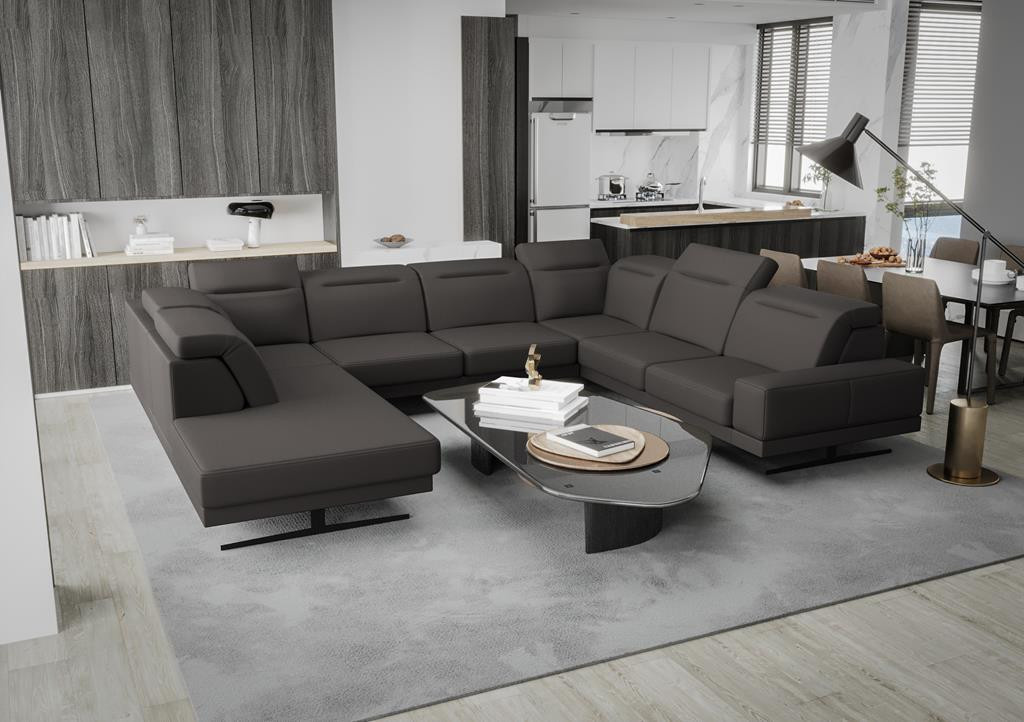 NAROŻNIK SKÓRZANY FIORE MAX I 220x350x265 CM - Odcienie ciemnego popiela , prawa