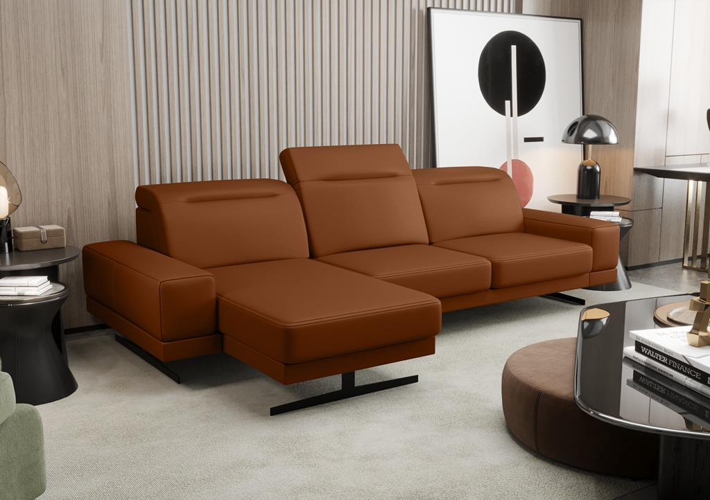 NAROŻNIK SKÓRZANY FIORE MINI 265x180 CM - Odcienie ceglaste , lewa