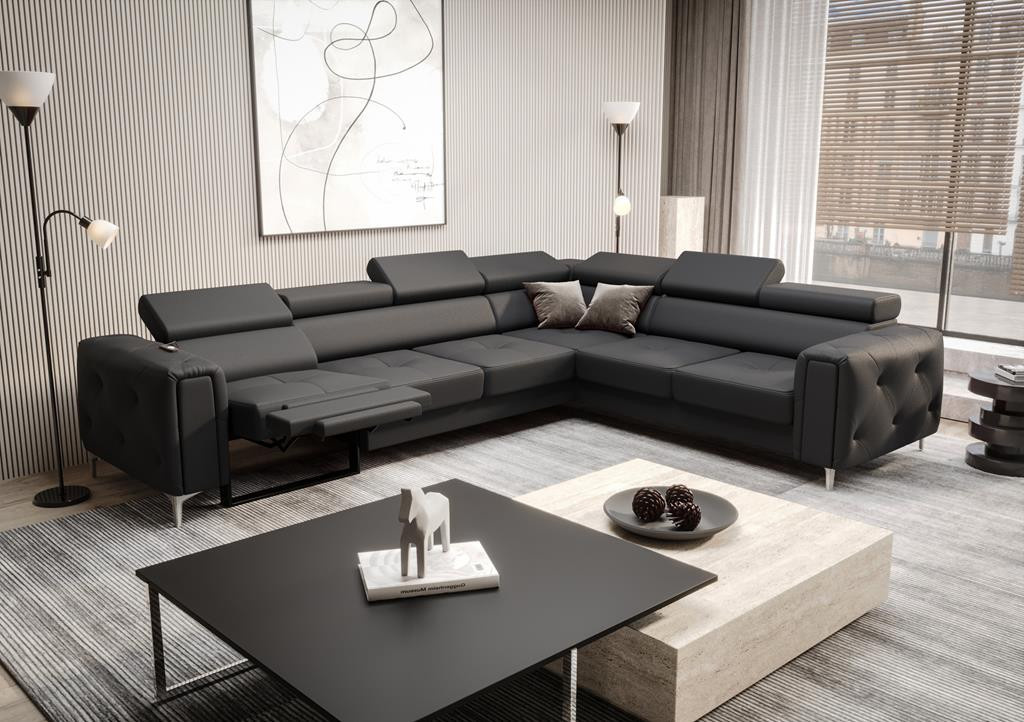 Narożnik skórzany z funkcją relax Orion I o wymiarach 325x255 cm to prawdziwy klejnot w naszej bestsellerowej kolekcji w stylu glamour. Model ten wyróżnia się przepięknie zdobionym, pikowanym bokiem, który nadaje całości niepowtarzalnego charakteru. Orion I przyciąga wzrok dzięki wyjątkowym, pikowanym detalom. Te zdobienia nie tylko dodają elegancji, ale także podkreślają luksusowy styl mebla. Pikowania wprowadzają do wnętrza odrobinę wyrafinowanego szyku, co sprawia, że narożnik staje się centralnym punktem każdego salonu. Wysokie nóżki, na których osadzony jest narożnik, dodają mu nowoczesnego wyglądu. Dzięki nim mebel zyskuje lekkość, a sprzątanie pod nim staje się znacznie łatwiejsze. Funkcja relax, w którą wyposażony jest narożnik, zapewnia maksymalny komfort użytkowania. Możliwość regulacji pozwala na dostosowanie pozycji siedzenia do indywidualnych potrzeb, co czyni go idealnym miejscem do relaksu po ciężkim dniu. Narożnik z funkcją relax i spania – wygoda i elegancja w jednym Nasze modele mebli z funkcją relax i spania powstały z myślą o najbardziej wymagających klientach. Cenisz sobie nowoczesny i elegancki wygląd? Meble te łączą w sobie te cechy, gwarantując jednocześnie maksymalny komfort. Dzięki zastosowaniu funkcji relax, Twój odpoczynek zyska nowy wymiar. Rozsiądź się wygodnie przed telewizorem z kubkiem ciepłej kawy, oglądając swój ulubiony serial. Funkcja relax pozwala na wielostopniową regulację, dzięki czemu z łatwością dopasujesz ją do swojej ulubionej pozycji. Narożnik ze skóry naturalnej i jego właściwości Narożnik skórzany z funkcją relax Orion I to wyjątkowy mebel. Posiada funkcję spania rozkładaną na automacie delfin. Jest to doskonałe rozwiązanie dla tych, którzy często przyjmują gości. W zaledwie kilka chwil możesz przekształcić sofę w wygodne łóżko, co znacząco zwiększa funkcjonalność Twojego wnętrza. Mebel posiada pojemnik na pościel wykonany w całości z płyty laminowanej. To praktyczne rozwiązanie zapewnia dodatkowe miejsce do przechowywania, co ułatwia utrzymanie porządku w salonie. Dzięki temu masz więcej przestrzeni na inne niezbędne rzeczy. Orion I relax oferuje dwie wersje nóg do wyboru: metalowe szpilki w kolorze srebrnym lub czarnym. Nogi o wysokości 13 cm nie tylko nadają narożnikowi elegancki wygląd, ale również ułatwiają pracę odkurzaczom sprzątającym typu I-Robot. Narożnik z regulowanymi zagłówkami. Wyjątkiem jest zagłówek narożny, który pozostaje stały. Dzięki możliwości regulacji możesz dostosować mebel do najbardziej komfortowej dla siebie pozycji, co czyni go idealnym miejscem do relaksu. Pikowany bok narożnika w stylu glamour podkreśla indywidualny charakter całej kolekcji, dodając wnętrzu luksusowego akcentu. Te detale sprawiają, że narożnik staje się nie tylko funkcjonalnym, ale i stylowym elementem wyposażenia Twojego salonu. Polski producent mebli ze skóry naturalnej Zamawiając meble naszej produkcji możesz być pewien, że otrzymujesz produkt najwyższej jakości. Korzystamy jedynie ze skóry naturalnej licowej. Meble wykonane są z całych błamów zwierzęcych. Dzięki temu mebel zyskuje na trwałości. W porównaniu do innych producentów, my nie korzystamy z żadnych zastępczych materiałów. Nasze meble wykonane są w całości ze skóry naturalnej, także boki oraz tył (poza funkcją spania). W naszej pracy kierujemy się starannością i dbałością o najdrobniejszy szczegół. Madras jednokolorowy półmat, symbol K Madras antykowany połysk, cieniowana, symbole A, C, S Federica pół-połysk, symbol G Wszystkie elementy produktu narożnik Orion I zostały obszyte grubym szwem, co stanowi ozdobę i wzmacnia połączenia tkanin. Siedziska zbudowaliśmy na sprężynach falistych oraz piance wysoko elastycznej (połączenie najlepszych jakościowo pianek T35 i HR), co sprawiło, że są one średnio miękkie a jednocześnie bardzo wytrzymałe. Stelaże wykonujemy z drewna i płyty meblowej, dlatego nasze meble są solidnie wykonane, a cena idzie zawsze w parze z jakością. Sprawdź realizacje kolekcji Orion na żywo - przejdź do GALERII. Wszystkie meble wykonywane są pod indywidualne zamówienie. Prosimy o przemyślane zakupy. Towar nie podlega zwrotowi. Meble do samodzielnego montażu.