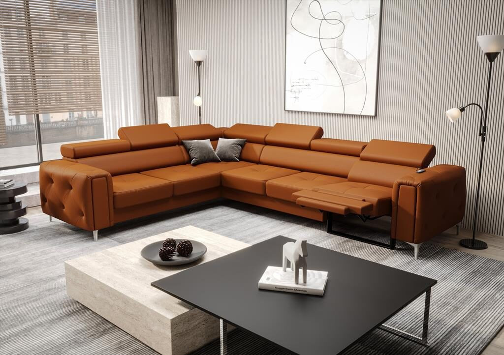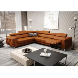 NAROŻNIK SKÓRZANY Z FUNKCJĄ RELAX ORION I 325x255 CM - lewa , Odcienie pomarańczowego