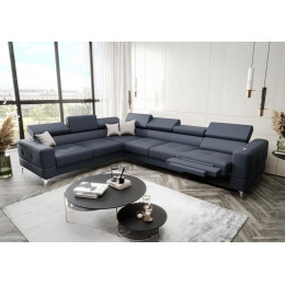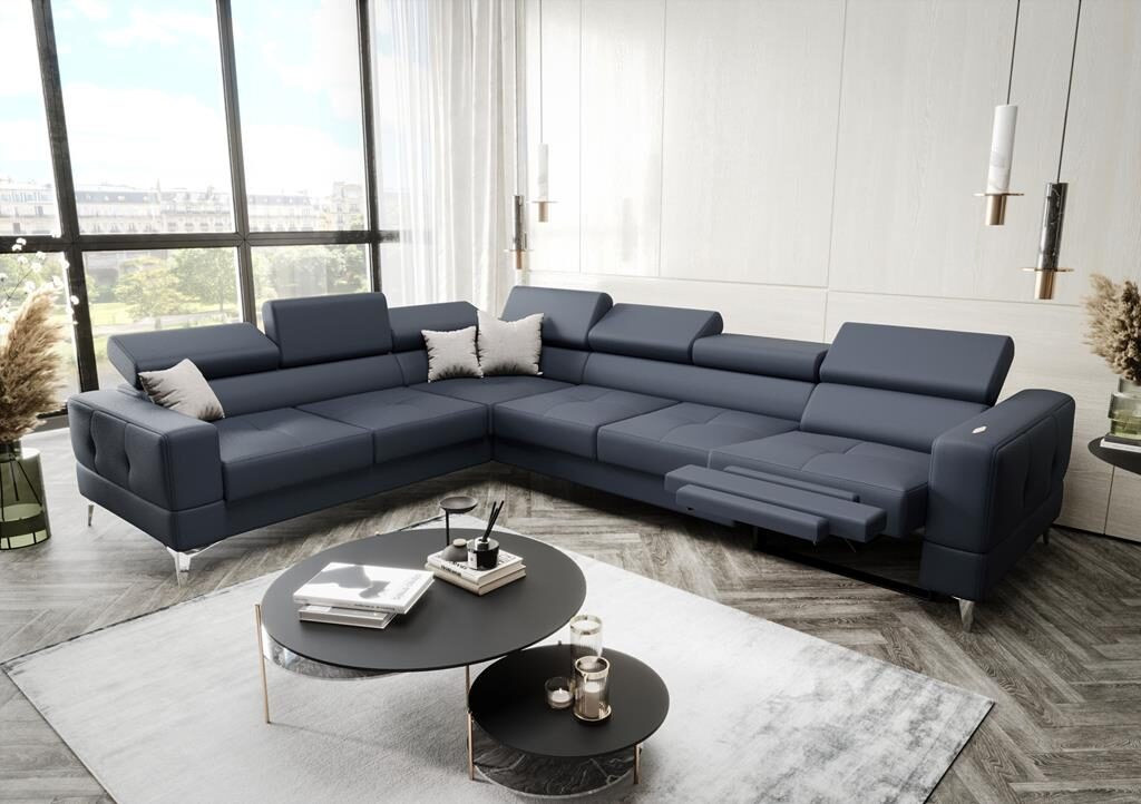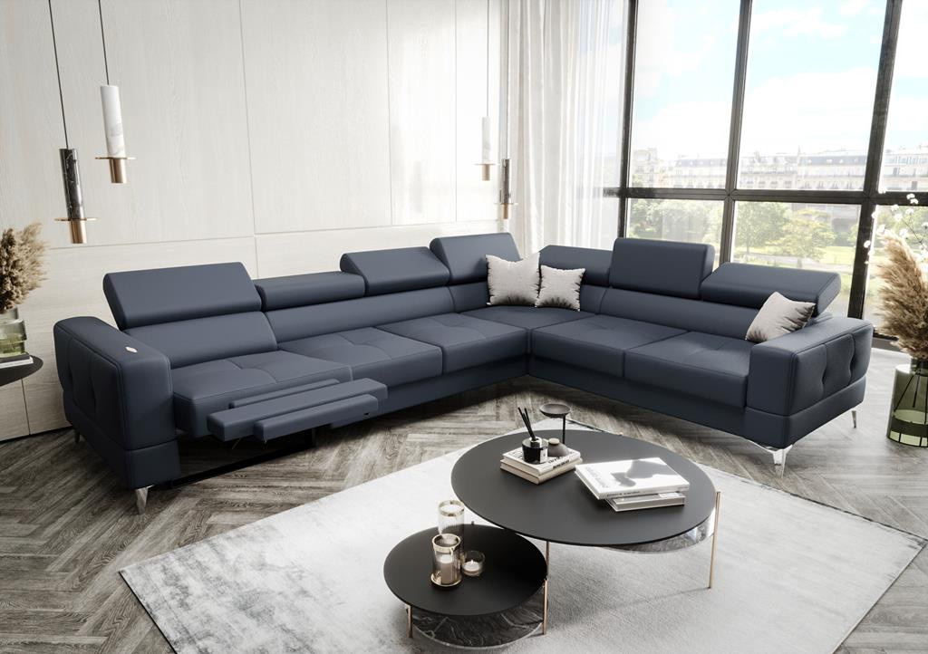 NAROŻNIK SKÓRZANY Z FUNKCJĄ SPANIA I RELAX - TOSCANIA MAX 320x250 CM - lewa , Odcienie niebieskoszarego