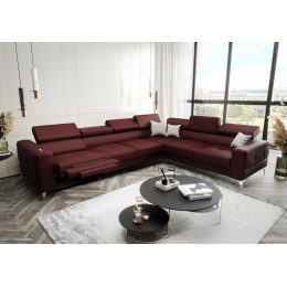 NAROŻNIK SKÓRZANY Z FUNKCJĄ SPANIA I RELAX - TOSCANIA MAX 320x250 CM - prawa , Odcienie bordowego
