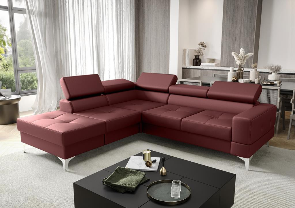 NAROŻNIK SKÓRZANY Z FUNKCJĄ SPANIA TOSCANIA II 230x250 - lewa , Odcienie czerwieni