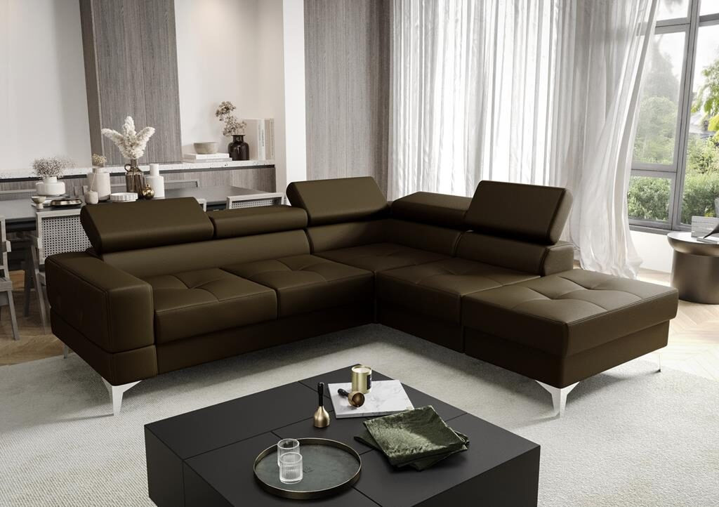NAROŻNIK SKÓRZANY Z FUNKCJĄ SPANIA TOSCANIA II 230x250 - prawa , Odcienie brązu