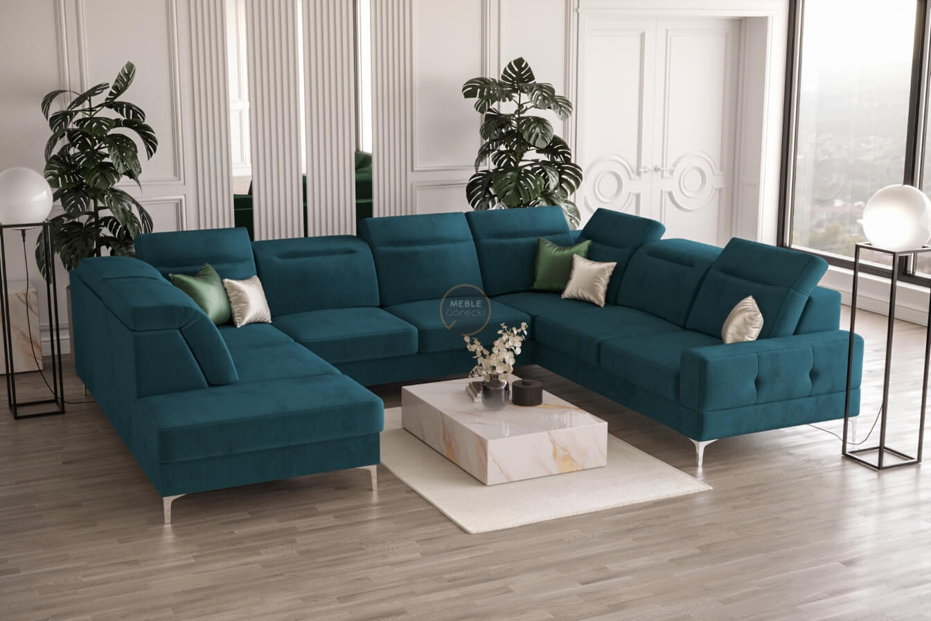 NAROŻNIK TAPICEROWANY MALIBU MAX I 260x350x220 CM - Odcienie niebieskiego , Strona prawa