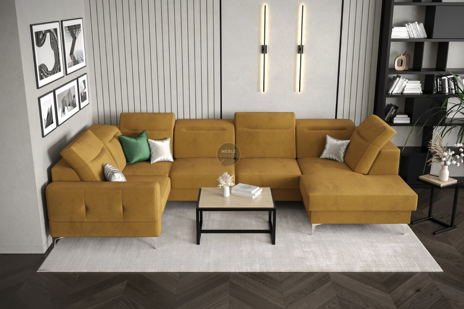 NAROŻNIK TAPICEROWANY MALIBU MAX II 180x350x182 CM - Odcienie żółtego , Strona lewa