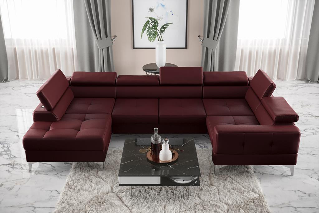 NAROŻNIK TOSCANIA MAX I 170x350x185 CM SKÓRA NATURALNA - lewa , Skóra czerwona