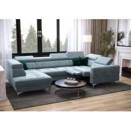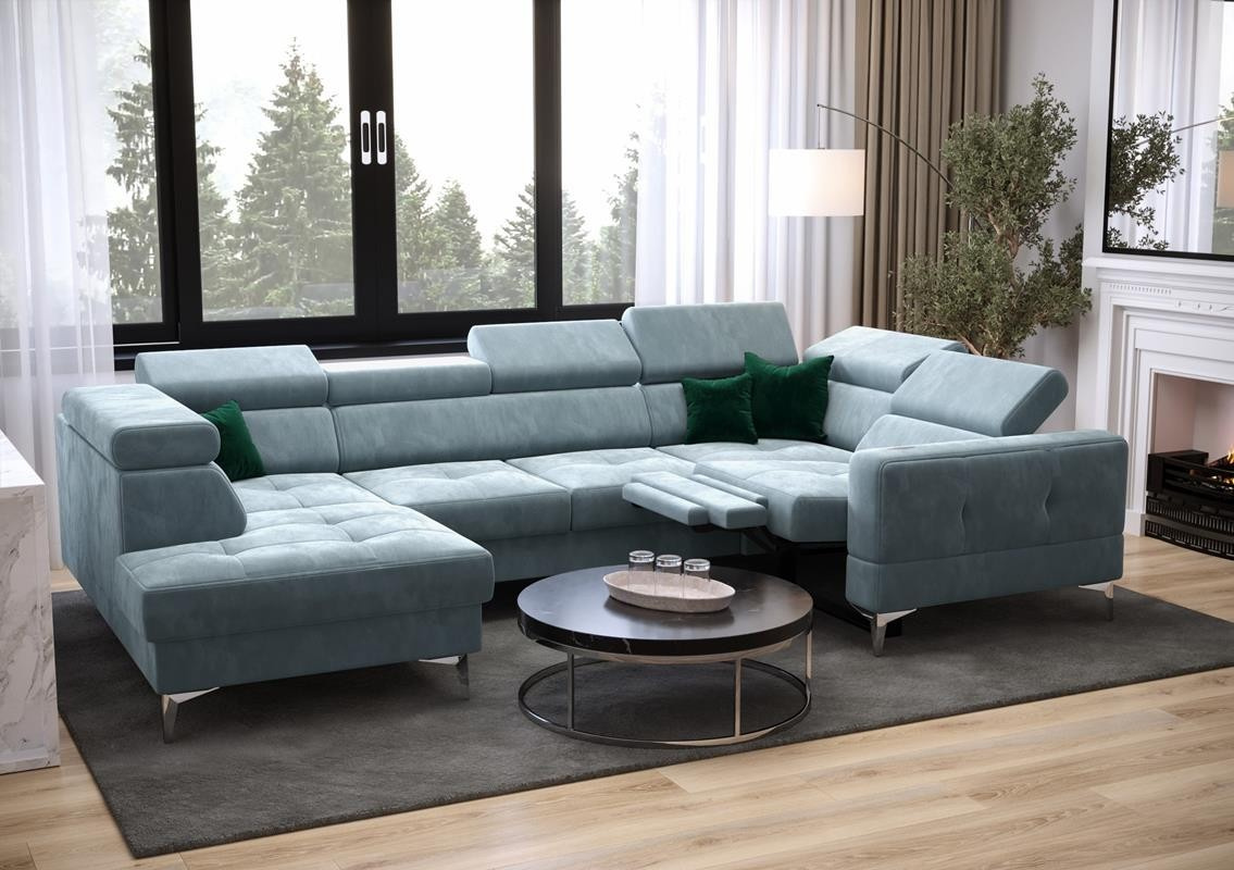 NAROŻNIK TOSCANIA MAX I RELAX Z FUNKCJĄ SPANIA170x350x185 CM - prawa , Odcienie jasnoniebieskie