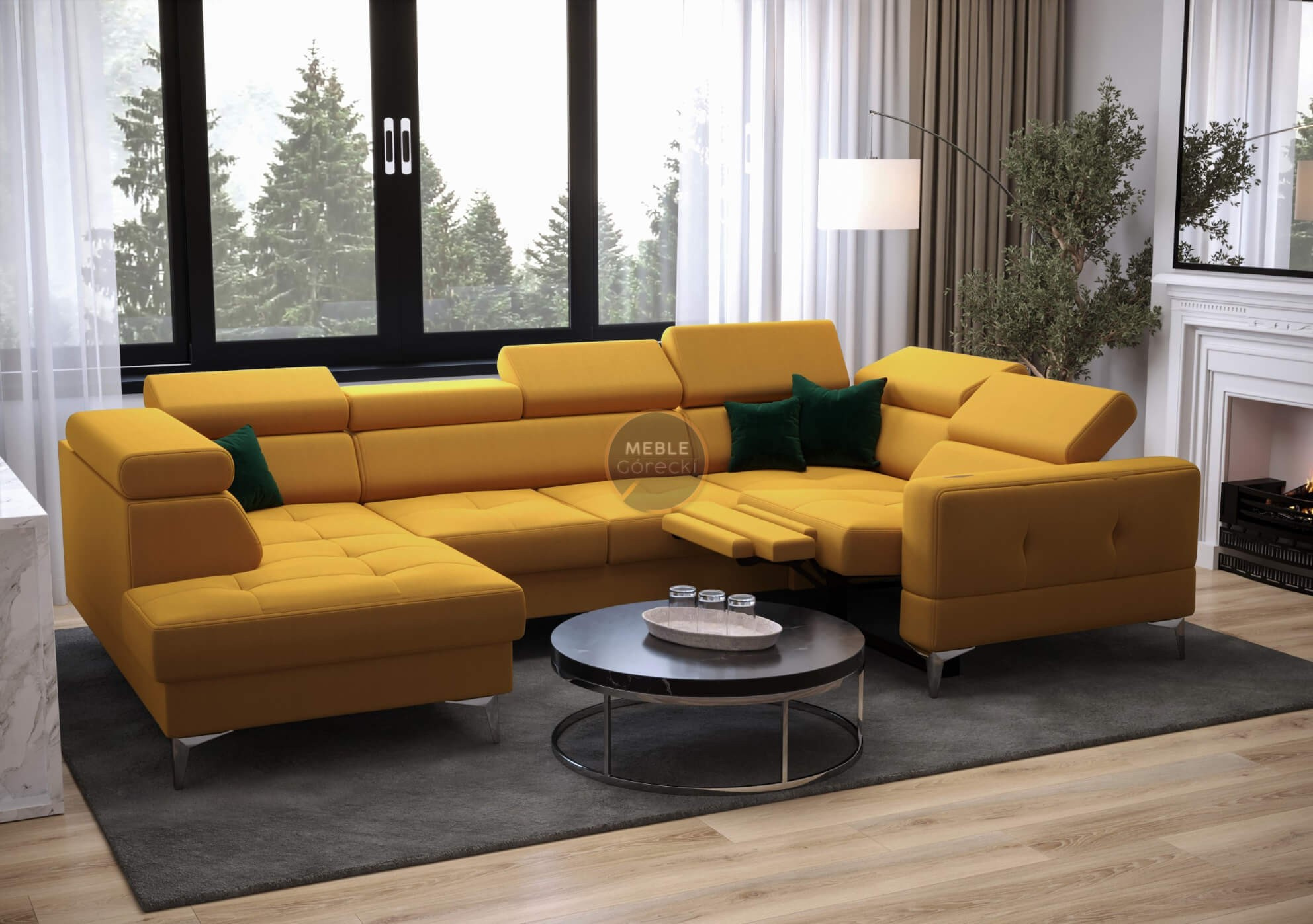 NAROŻNIK TOSCANIA MAX I RELAX Z FUNKCJĄ SPANIA170x350x185 CM - prawa , Odcienie żółte